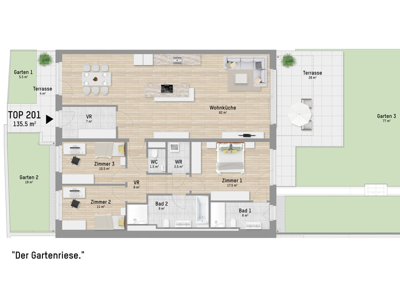 1220 Wien | Lobaugasse 25 | TOP 2.01"Der Gartenriese."Exklusive Eigentumswohnungen bei der Lobau: Der Name bzw. die Adresse ist definitiv Programm in der Lobaugasse 25, denn von Ihrer neuen Adresse sind Sie in 5 Fahrradminuten direkt im Nationalpark Donau Auen. Auch besonders praktisch: In der gleichen Zeit erreichen Sie die U2 Station Aspernstraße. In zwei Bauteilen wurden hier in Aspern im 22. Bezirk insgesamt 18 erstklassige und bezugsfertige Eigentumswohnungen auf Eigengrund fertiggestellt. Genießen Sie Wohnflächen von in moderner Architektur und mit ausgeklügelten Grundrissen. Die schlüsselfertige Ausstattung überzeugt wie immer bei Glorit ausschließlich mit regionalen und internationalen Topmarken. Atmen Sie auf, tanken Sie Energie: Alle Wohnungen verfügen über großzügig dimensionierte Terrassen, in den Erdgeschosseinheiten entspannen Sie im eigenen Garten. Ein zusätzlicher Pluspunkt in Sachen Nachhaltigkeit: Die Photovoltaikanlage am Dach liefert Strom für die Allgemeinflächen, geheizt wird mittels Wärmepumpe und die Deckenkühlung verschafft eine sehr angenehme Kühlung in den Sommermonaten. Zu jeder Wohnung gehört ein eigenes Kellerabteil und Ihr Auto parken Sie bequem und sicher in der hauseigenen Tiefgarage. Besondere Möglichkeiten bieten die Maisonette-Wohnungen, die sich über das Erd- und Untergeschoss erstrecken. Hierbei entsteht im eigentlichen Keller des Hauses zusätzliche Fläche, die Sie perfekt für Ihr Home-Office, als Fitnessraum, Gästezimmer oder z.B. auch als Ordinationsräume nützen können. Besonders praktisch ist der eigene Zugang zur Tiefgarage. Jeder Moment, den Sie in Ihrem neuen Zuhause verbringen, soll Freude machen ? sogar, wenn Sie im Home-Office arbeiten. Moderne Architektur trifft auf eine wirklich bis ins letzte Detail durchdachte Raumaufteilung ? Grundrisse, die nicht nur am Plan, sondern auch im echten Leben überzeugen. Willkommen im 1. Haus am Platz. Alle Highlights: - 4-Zimmer-Eigentumswohnung - Grünlage, nur 5 Fahrradminuten von der U2 - Auf Eigengrund - Erstbezug - Kurzfristig beziehbar - Hebe-/Schiebetür vom Wohnbereich zum riesigen Ost-Garten mit Terrasse - 1 Badezimmer mit Badewanne, Dusche und WC - 1 weiteres Badezimmer mit Dusche und WC - WC extra - Wirtschaftsraum mit Waschmaschinenanschluss - Hochwertige Markenausstattung (Echtholzparkett, Feinsteinzeug-Fliesen, Holz-Alu-Fenster mit 3-fach Isolierverglasung, uvm.) - Effizientes Heiz- und Kühlsystem mit Wärmepumpe - Einzeln regulierbare Fußbodenheizung in allen Zimmern inkl. Badezimmer - Provisionsfrei - direkt vom Bauträger - Kaufpreis schlüsselfertig: 849.900 EURBeste Lage. Beste Aussichten. - 5 Fahrradminuten zur U2-Station Aspernstraße - Grün, ruhig und dennoch zentral - Unweit des Nationalparks Donau-Auen - Kurze Distanz zum SMZ Ost - DonauspitalExklusivität inklusive.An dieser Stelle könnten wir jetzt lange ausholen. Ihnen zum Beispiel erzählen, dass wir im Gegensatz zu vielen anderen Bauträgern keine Projektgesellschaften gründen und damit unseren Kund:innen im Falle eines Falles maximale Sicherheit bei bester Bonität garantieren. Oder dass wir bei der Bauqualität mit unseren eigenen Teams und unseren regionalen Partnern keine Kompromisse machen. Oder dass unsere Eigentumswohnungen ausschließlich mit Top-Marken ausgestattet werden und wir auch in Sachen Kundenberatung das 1. Haus am Platz sind. Oder, oder, oder.Apropos Beratung. Wenn wir Sie neugierig gemacht haben, freuen wir uns auf Ihre Anfrage und melden uns umgehend bei Ihnen ? an sieben Tagen in der Woche, auch am Abend. Großes Plus: Falls gewünscht, bieten wir zusätzlich eine kostenlose und individuelle Finanzierungsberatung durch unabhängige Expert:innen.Glorit Bausysteme GmbH | 2301 Groß-Enzersdorf | Gloritstraße 2Änderungen vorbehalten.
