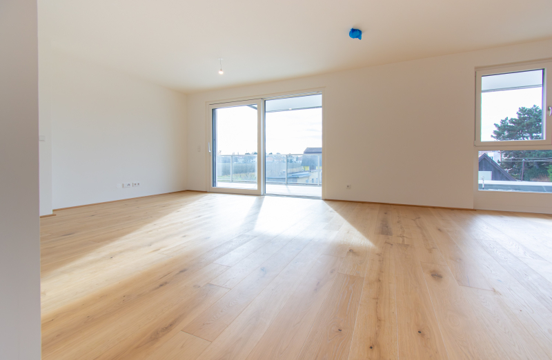 A spacious 4-room apartment with around 115 m2 of living space is available for rent at Mühlhäufelweg 69, 1220 Vienna. The apartment, a first occupancy, is located on the 1st floor of a new building, was built by the premium developer Glorit and impresses with its well-known modern architecture and exclusive furnishings. The apartment is divided into an entrance hall, from which a fully equipped bathroom (shower, washbasin, washing machine connection and toilet) and one of the three bedrooms (16 m², 13 m², 12 m²) can be accessed. After the entrance hall, you enter the south-facing and light-flooded eat-in kitchen with a high-quality fitted carpenters kitchen and brand-name appliances. The approx. 20 m² terrace can be accessed from both the eat-in kitchen and the largest bedroom and is also south-facing. The second bathroom of the apartment is located in the immediate vicinity of two bedrooms and is equipped with a bathtub, floor-level rain shower, double washbasin and another toilet. A garage space can also be rented if required. A cellar compartment of around 4 m² is available to the tenant. Equipment details: - Efficient heating and cooling system with heat pump - Individually adjustable underfloor heating in all rooms incl. bathroom - Adjustable ceiling cooling in all rooms - Fine real wood floorboards from the Austrian quality brand Scheucher or equivalent - Terrace tiling with porcelain stoneware on all floors - Stainless steel/glass railings with safety glass and outside water connection on the terrace/loggia - One connection preparation for TV and one empty pipe with leader for an internet connection for each room - High-quality fitted kitchen with brand-name appliances - Burglar-resistant apartment entrance door of class WK3 - Interior doors from brand manufacturer with tubular chipboard inserts for optimum sound insulation - Modern, large lift/sliding doors according to plan from Austrian brand manufacturer Hrachowina - Wood-aluminum windows and balcony doors with triple insulating glazing from Hrachowina - Conveniently operated electric blinds with radio remote control - Exclusive sanitary equipment from the Villeroy & Boch brand - High-quality fittings from the Hansgrohe brand - Comfortable towel radiator with electric cartridge in the bathroom - Spacious shower area with floor-level shower, stainless steel channel and frameless real glass enclosure - Mechanical ventilation in the interior bathrooms and WCs - Elegant porcelain stoneware tiles in 60 x 60 cm format - Tiling to a height of 2.40 m in the bathroom and 1.20 m in the WC - Exterior walls in solid construction with high-quality thermal insulation composite system - Photovoltaic system on the roof for partial energy generation for common areas - Convenient elevator - High-quality garden fence on the first floor Location and infrastructure - 7 minutes by bike to the U2 station Donauspital - Green, quiet and yet central - 500 meters to the Upper Mühlwasser - Not far from the Donau-Auen National Park - Short distance to SMZ Ost – Donauspital Just 500 meters from the Oberes Mühlwasser, 8 exclusive condominiums are being built on private land at Mühlhäufelweg 69 in the 22nd district. The location in the countryside with ideal accessibility to the city offers you maximum living comfort, rounded off by high-quality fittings and well thought-out floor plans. The best connections are important, also in terms of transport: In just 7 minutes by bike, you can be at the U2 Donauspital station. If you prefer to take it easy, the surrounding bus lines will take you to the subway and from here you can quickly reach the city center. You will find peace and relaxation in the beautiful natural surroundings of the Mühlwasser and the Lobau recreation area in the immediate vicinity. The wide range of leisure activities on offer and the many educational facilities for young and old ensure that there is never a dull moment. And should it ever be necessary: Professional medical care is also available nearby at SMZ Ost. Costs: Total rent incl. operating costs and VAT: 2,990.00 euros Gross operating costs: 220.02 euros WITH PURCHASE OPTION - further information on request! Deposit: 6 gross monthly rents Free of commission! We are happy to advise you on all our projects - we currently have over 100 projects for sale and rent!