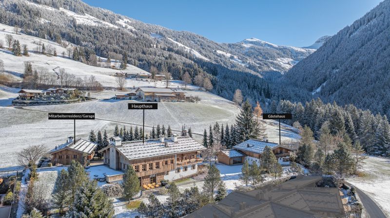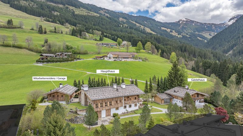 Dieses Luxusanwesen ist absolut einzigartig und liegt in der prominentesten Toplage, der Kochau in Aurach bei Kitzbühel. Die Kochau ist ein idyllisches, sonnenverwöhntes Plateau unweit von Kitzbühel und zählt zu den exklusivsten Wohngebieten. Der gebotene Panoramablick reicht vom Wilden Kaiser über den Hahnenkamm, das Kitzbüheler Horn bis hin zu den Südbergen. Absolute Ruhe, höchste Privatsphäre und ein wunderschön angelegter Garten, sind nur drei der vielen Besonderheiten dieser repräsentativen Liegenschaft. Lassen Sie sich von der traumhaften Landschaft, dem Panoramablick und gebotenen Luxus verzaubern und machen dieses Anwesen zu ihrem Eigentum für Familie & Freunde & Firma. Auf 3.770 m² Grund stehen insgesamt 3 Häuser mit 1.195 m² Gesamtfläche: - Das bäuerlich gestaltete Haupthaus mit einer Wohn-/Nutzfläche von ca. 620 m², - das Gästehaus mit einer Wohn-/Nutzfläche von ca. 300 m² und - die Mitarbeiterresidenz & Garage mit einer Wohn-/Nutzfläche von ca. 263 m². DAS HAUPTHAUS Im Stil eines traditionellen Bauernhauses, überzeugt dieses Objekt vor allem durch Liebe zum Detail, höchste Handwerkskunst, Altholz und hochwertigste Materialien & Ausstattung. Schon beim Betreten vermittelt die Residenz ein einzigartiges Ambiente und Wohngefühl. Im Erdgeschoss befinden sich der repräsentative Eingangsbereich, eine Gäste-Toilette, ein Büro, eine gemütliche Stube mit großem Esstisch und angrenzender Küche, der Wellnessbereich mit Indoorpool, Ruheraum, Sauna, Dusche, WC, Terrasse mit Whirlpool und ein zweiter Eingangsbereich mit großer Garderobe. Vor dem Haus steht noch eine Richtung Süden ausgerichtete Terrasse und der riesige Garten zur Verfügung. Im 1. Obergeschoss erstreckt sich auf über 100 m² der repräsentative Wohn-Essbereich mit offenem Kamin, einer Galerie und gigantischer Raumhöhe, gepaart mit Dachstuhluntersicht. Angrenzend befindet sich eine zweite kleine Küche. Weiters sind hier 3 Schlafzimmer, ein Badezimmer, der Master-Schrankraum & das Masterbad gelegen. Ein großer Balkon rundet diese Etage perfekt ab. Im Dachgeschoss ist der große Masterbedroom mit Kamin, angrenzendem Kinderzimmer und zwei Ankleiden sowie einem weiteren Badezimmer situiert. Vom Masterschlafzimmer gelangt man auf einen weiteren Balkon. Im Untergeschoss des Landhauses sind zahlreiche Technikräume/Lagerräume, der Hauswirtschaftsraum sowie ein Weinlagerraum untergebracht. GÄSTECHALET Selbst dieses Objekt lässt keine Wünsche offen, sodass sich Gäste den gesamten Aufenthalt über wohlfühlen. Im Erdgeschoss betritt man das Haus und gelangt in den großzügigen Vorraum mit Garderobe und Toilette. Weiters in den riesigen Wohnraum mit Kamin und Esserker. Angrenzend befindet sich die Küche und ein großes Esszimmer. Vom Wohnraum sowie dem Esszimmer kommt man auf die Terrasse und in den Garten. Das Masterschlafzimmer mit Bad en suite und separater Toilette befindet sich ebenfalls auf dieser Ebene. Im Obergeschoss stehen für Gäste drei komfortable Schlafzimmer mit jeweils eigenem Bad en suite zur Verfügung. Zur Entspannung, steht im Untergeschoss der Hauses ein eigener Wellnessbereich mit Sauna, ein in den Boden eingelassener großer Whirlpool, Massageraum, Dusche und WC zur Verfügung. Ebenfalls im Untergeschoss befindet sich der Hauswirtschaftsraum, zwei Lagerräume und der Haustechnikraum. MITARBEITERHAUS & GARAGE Ein solch riesiges Anwesen benötigt am besten eine Person, welch das ganze Jahr über vor Ort ist und sich um alles kümmert und dafür steht eine eigenes Mitarbeiterhaus zur Verfügung. Dieses bietet eine Wohnung mit Vorraum, Gäste-Toilette, großem Wohnraum, eine separate Küche, einen Schrankraum und ein Schlafzimmer mit Bad en suite sowie einen Balkon und eine Terrasse. Neben der Wohnung befindet sich ein Büro mit Teeküche und Toilette. Unterhalb der Mitarbeiterwohnung befindet sich die ca. 130 m² große Garage des Anwesens. Wie Sie schon aus der umfangreichen Beschreibung und den Bildern entnehmen können, handelt es sich hier um eine absolute Luxusresidenz für den anspruchsvollen Käufer, welche neben unglaublicher Größe höchste Privatsphäre bietet. Das gesamte Anwesen ist Videoüberwacht und mit zahlreichen Kameras ausgestattet. Kontaktieren Sie uns gerne für weitere Details. Wir bitten um Verständnis, dass wir zu dieser Liegenschaft erst alle Details im Rahmen einer persönlichen Besichtigung preisgeben, um die Privatsphäre der Eigentümer zu wahren. Energiedaten in Arbeit. Sofort verfügbar.Klimaanlage: JAKabel/SAT/TV: JASwimmingpool: JAProvision: 3,0 %