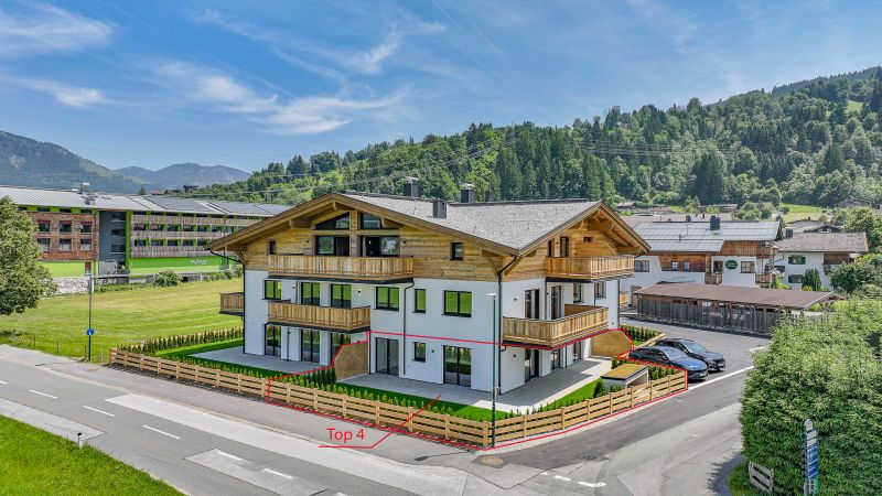 Nur wenige Fußminuten vom Ortskern St. Johann, wurde diese exklusive Wohnanlage mit 360°-Panoramablick auf die umliegende Bergwelt errichtet. Insgesamt befinden sich nur 10 Wohneinheiten in der hochwertigen Anlage, wodurch die Exklusivität der Liegenschaft unterstrichen wird. Jedes der Apartments verfügt über mindestens einen Autoabstellplatz in der Tiefgarage und ist von dort bequem mit dem Lift erreichbar. Die angebotenen Wohnungen werden energiesparend und effizient über Fernwärme beheizt und verursachen so in Zukunft geringere Betriebskosten. Die einzelnen Apartments sind mit hochwertigen Eichenböden und exklusiven Sanitärbereichen ausgestattet. Ebenso gehört zu jeder Einheit eine Terrasse und bei den Erdgeschosswohnungen auch ein eigener Garten und ein Kellerabteil dazu. In unmittelbarer Nähe zum Objekt befindet sich ein Skilift sowie zahlreiche Wander- und Fahrradwege. In nur 10 Fußminuten befinden Sie sich in der Fußgängerzone von St. Johann und haben eine breite Auswahl an Geschäften und Restaurants. Somit können Sie Skilift, Zentrum und Geschäfte ohne PKW erreichen, was von großem Vorteil ist. Hierbei handelt es sich um die Erdgeschoss-Gartenwohnung Top 4 mit ca. 93 m² Wohnfläche um 907.774 ?. Zubehör sind zwei Tiefgaragenstellplätze um je 30.000 ?. Die 4-Zimmerwohnung teilt sich auf in den großzügigen Eingangsbereich, welcher sodann auch alle Zimmer miteinander verbindet. Der ca. 32 m² große Wohn-Ess-Kochbereich überzeugt vor allem durch die großen Glasfronten und den damit verbunden Ausblick auf den Wilden Kaiser. Weiters verfügt die Wohnung über drei Schlafzimmer und zwei Badezimmer. Ein Highlight ist mit Sicherheit die ca. 66 m² große Sonnenterrasse, welche süd-west seitig ausgerichtet ist und sodann in den ca. 116 m² großen Garten mündet. Zur Wohnung gehören zwei Tiefgaragenstellplätze sowie ein ca. 4,3 m² großes Kellerabteil. Energiedaten in Arbeit. Verfügbar ab sofort. Übersicht über die weiteren zum Verkauf stehenden Wohnungen: ERDGESCHOSS Top 1 mit 65,60 m² Wohnfläche, 114,69 m² Garten, 59,85 m² Terrasse, 3 Zimmer, 2 Schlafzimmer, 1 Bad um 667.880,00 ? Top 2 mit 63,66 m² Wohnfläche, 46,42 m² Garten, 52,08 m² Terrasse, 3 Zimmer, 2 Schlafzimmer, 1 Bad um 623.868 ? Top 3 mit 49,18 m² Wohnfläche, 39,67 m² Garten, 30,33 m² Terrasse, 2 Zimmer, 1 Schlafzimmer, 1 Bad um 481.964 ? Top 4 mit 92,63 m² Wohnfläche, 116,38 m² Garten, 66,43 m² Terrasse, 4 Zimmer, 3 Schlafzimmer, 2 Bäder um 907.774 ? 1. OBERGESCHOSS Top 5 mit 64,60 m² Wohnfläche, 29,24 m² Terrasse, 3 Zimmer, 2 Schlafzimmer, 1 Bad um 645.820 ? Top 6 mit 63,96 m² Wohnfläche, 17,99 m² Terrasse, 3 Zimmer, 2 Schlafzimmer, 1 Bad um 626.808 ? Top 7 mit 77,93 m² Wohnfläche, 17,99 m² Terrasse, 3 Zimmer, 2 Schlafzimmer, 1 Bad um 761.460 ? Top 8 mit 92,63 m² Wohnfläche, 21,46 m² Terrasse, 4 Zimmer, 3 Schlafzimmer, 2 Bäder um 907.774 ? DACHGESCHOSS Penthouse Top 9 mit 147,21 m² Wohnfläche, 43,68 m² Terrasse, 4 Zimmer, 3 Schlafzimmer, 2 Bäder um 2.208.150 ? Penthouse Top 10 mit 159,03 m² Wohnfläche, 42,52 m² Terrasse, 4 Zimmer, 3 Schlafzimmer, 2 Bäder um 2.430.450,00 ?Provision: 3,0 %