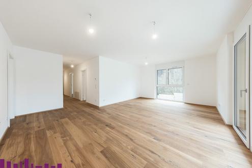 PUR Wohnen Ihr Zuhause am Rande des WienerwaldesDiese durchdachte 4-Zimmer-Wohnung im Obergeschoss bietet auf 92,45 m² Wohnfläche eine perfekte Kombination aus Komfort, Funktionalität und Helligkeit. Der 12,00 m² große Balkon lädt zum Entspannen ein und schafft eine angenehme Verbindung zwischen Innen- und Außenbereich. Die Wohnung ist barrierefrei und über einen Aufzug bequem erreichbar. Dank der optimalen Raumaufteilung eignet sie sich ideal für Familien oder Paare, die viel Platz und eine helle Wohnatmosphäre schätzen. Die Wohnküche (27,62 m²) ist offen gestaltet und bildet mit ihrem großzügigen Schnitt den Mittelpunkt der Wohnung. Große Fensterflächen sorgen für eine freundliche, lichtdurchflutete Atmosphäre, während der direkte Zugang zum Balkon das Wohngefühl zusätzlich aufwertet. Das Hauptschlafzimmer (12,99 m²) bietet viel Platz für individuelle Gestaltungsmöglichkeiten. Zwei weitere Zimmer (11,64 m² & 11,22 m²) sind vielseitig nutzbar ob als Kinder-, Gäste- oder Arbeitszimmer. Besonders komfortabel ist die Badezimmerausstattung: Zwei moderne Bäder eines mit Badewanne, das andere mit Dusche bieten höchsten Wohnkomfort. Zudem gibt es noch ein separates WC mit Handwaschbecken für zusätzlichen Komfort. Ein praktischer Abstellraum (1,85 m²) sorgt für extra Stauraum. Highlights: Sonniger Balkon (12,00 m²) für entspannte Stunden im Freien 4-Zimmer-Aufteilung ideal für Familien oder Home-Office 2 Badezimmer & 2 separate WCs für höchsten Wohnkomfort Barrierefrei & mit Aufzug bequemer Zugang zur Wohnung Privater Kellerraum & Tiefgaragenstellplatz optional verfügbar Diese Wohnung kombiniert modernen Wohnkomfort mit einer intelligenten Raumaufteilung und überzeugt mit Helligkeit, Großzügigkeit und einem sonnigen Außenbereich.Infrastruktur / EntfernungenGesundheitArzt