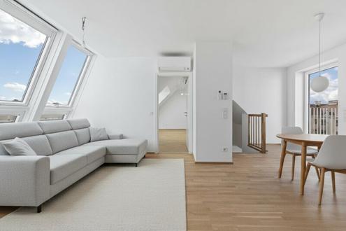 In einem bis ins Detail liebevoll revitalisierten Altbau gelangen 11 einzigartige Wohnungen zwischen ca. 30 und 85 m² zum Verkauf ein Ensemble, das Wiener Wohnkultur und modernen Komfort auf elegante Weise verbindet. Vier der Einheiten sind neu errichtete Dachgeschosswohnungen, die mit lichtdurchfluteten Räumen und urbanem Weitblick begeistern. Das Gebäude wurde einer umfassenden Generalsanierung unterzogen: zwei neue Dachgeschosse, ein Lift, erneuerte Fenster, eine sanierte Fassade und ausgewählte Materialien formen ein harmonisches Gesamtbild, das den Charme des Altbaus respektvoll in die Gegenwart holt. Im Inneren erwarten Sie schlüsselfertige Wohnungen, die mit attraktivem Eichenparkett, stilvoll verfliesten Bädern und vollausgestatteten Küchen ausgestattet sind. Die Dachgeschosswohnungen verfügen zusätzlich über Klimaanlagen der Premium-Marke Daikin, die auch an heißen Sommertagen für ein behagliches Wohnklima sorgen. Großzügige, jeweils den Wohnungen zugeordnete, Kellerabteile runden das Angebot ab. Der erste Eindruck lässt sofort erkennen, mit welcher Sorgfalt dieses Projekt umgesetzt wurde: Ein repräsentativer Entrée-Bereich mit kunstvollen Stuckelementen, indirekter Beleuchtung und dezent untermalter klassischer Musik empfängt Bewohner und Gäste gleichermaßen stilvoll. Die Gemeinschaftsflächen sind mit handverlegten Zementfliesen, typisch für die Wiener Altbauära, gestaltet ein Detail, das die besondere Atmosphäre des Hauses zusätzlich unterstreicht. Dieses Objekt richtet sich an Käufer, die Ästhetik, Qualität und ein außergewöhnliches Wohngefühl suchen ein Zuhause, das jeden Tag aufs Neue inspiriert. Im Haus befinden sich zusätzlich 9 professionell betriebene Kurzzeitapartments, die im Eigentum der Verkäuferin verbleiben und bau- sowie gewerberechtlich ordnungsgemäß gewidmet sind. Dieses Konzept wurde bewusst hochwertig umgesetzt und bringt für künftige Eigentümer eine Reihe an Vorzügen mit sich. Die Kurzzeiteinheiten werden sorgfältig betreut, was bedeutet: regelmäßige Reinigung, die auch den Allgemeinbereichen zugutekommt Verlässlich gewartete Technik und ständige Beobachtung des Gebäudezustands Ein erhöhtes Brandschutzniveau, das baulich und sicherheitstechnisch über dem üblichen Standard liegt Ein videoüberwachter Eingangsbereich, der Sicherheit und Kontrolle gewährleistet Ein modern ausgestatteter Getränke- und Snackautomat im Erdgeschoss für zusätzlichen Komfort Die Kurzzeitvermietung wird diskret, organisiert und auf professionellem Niveau geführt. Dadurch bleibt das Haus ruhig, gepflegt und in einem Zustand, der vielen herkömmlichen Wohnhäusern überlegen ist. Das Konzept fördert einen ordnungsgemäßen, sauberen und repräsentativen Charakter des gesamten Gebäudes ein Vorteil, der sowohl Ihrer Wohnung als auch dem langfristigen Werterhalt zugutekommt. Wenn Sie auf der Suche nach einem Zuhause sind, das Charme, Qualität und ein außergewöhnliches Wohngefühl vereint, dann laden wir Sie herzlich ein, diese besonderen Wohnungen persönlich kennenzulernen. Wir stehen Ihnen jederzeit für ein unverbindliches Gespräch, weiterführende Informationen sowie persönliche Besichtigungstermine zur Verfügung. Kontaktieren Sie uns wir freuen uns darauf, Sie auf dem Weg zu Ihrer neuen Traumimmobilie zu begleiten. Ihr Team von Real Construct Immobilien Fotos © RealAgency Hinweis: Einige der Fotos wurden mit der Unterstützung von KI bearbeitet.TOP: 36 Geschoß: 1.DG + 2.DG (Maisonette-Wohnung) Anzahl Zimmer: 3 Wohnfläche: 85,41 m² Terrasse: 13,67 m² Wir weisen darauf hin, dass zwischen dem Vermittler und dem zu vermittelnden Dritten ein familiäres oder wirtschaftliches Naheverhältnis besteht.Infrastruktur / EntfernungenGesundheitArzt