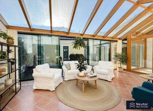 Dieses außergewöhnliche Einfamilienhaus in direkter Donauuferlage beeindruckt mit rund 340 m², 5 Zimmern und einer hochwertigen, stilvollen Ausstattung auf zwei Ebenen. Großzügige Wohnräume, ein ganzjährig nutzbarer Wintergarten, mehrere Schlafzimmer und Badezimmer sowie eine Doppelgarage machen dieses Zuhause ideal für anspruchsvolle Familien, Paare und Naturliebhaber. Eckdaten: Wohnfläche: 340,26 m² Nutzfläche: 437,53 m² Garten: 42,30 m² Zimmer: 5 Wintergarten: ja Bad: 2 - ein en-suit Badezimmer mit Badewanne, Dusche und Bidet und ein Badezimmer mit Dusche WC: 2 - mit Pissoir und Handwaschbecken, separat angelegt Schrankraum: ja Klimaanlage: ja - im Wintergarten Garage: ja - 2 Stellplätze Beschreibung: In unvergleichlicher Donauuferlage vereint dieses besondere Einfamilienhaus ein großzügig geplantes Raumkonzept mit hochwertiger, stilvoller Ausstattung. Auf zwei Ebenen präsentiert sich ein Zuhause, das Komfort, Eleganz und Naturverbundenheit harmonisch vereint und ideal für alle ist, die das Besondere suchen. Beim Betreten des Erdgeschosses empfängt Sie ein weitläufiger Vorraum, der mit seiner offenen Gestaltung viel Raum für eine Garderobe und einen stilvollen Empfangsbereich bietet. Das angrenzende Wohnzimmer mit Kamin schafft eine einladende Atmosphäre und bietet einen behaglichen Rückzugsort für entspannte Stunden mit Familie und Freunden. Die Küche überzeugt nicht nur durch Funktionalität, sondern auch mit einer großzügigen Fensterfront, die beim Kochen und Genießen einen traumhaften Blick auf die Donau eröffnet. Der direkt anschließende Wintergarten erweitert den Wohnbereich auf elegante Weise. Dank Klimaanlage und Heizung kann dieser ganzjährig genutzt werden und eignet sich ideal als Essbereich, Ruhe-Oase oder Ort für gesellige Stunden, stets begleitet vom Blick in den Garten. Vom Vorzimmer führt ein Gang zu einem separaten WC mit Handwaschbecken und Pissoir, einem praktischen Abstellraum mit Waschmaschinenanschluss, sowie einem weiteren Zimmer. Dieses lässt sich individuell als Kinder-, Gäste- oder Homeoffice-Zimmer einrichten. Zusätzlich bietet das Erdgeschoss ein großzügiges Schlafzimmer mit begehbarem Kleiderschrank. Das en suite Badezimmer ist eine wahre Wohlfühloase und bietet mit drei Handwaschbecken, Badewanne, Dusche und Bidet höchsten Komfort. Ein weiterer Abstellraum rundet das durchdachte Raumkonzept ab. Im Obergeschoss erwartet Sie ein Zimmer mit einer traumhaften Galerie, welches durch seine offene Gestaltung und den Blick in den Wintergarten besonders hell und einladend wirkt. Ein weiteres Zimmer bietet weiteren Platz für Gestaltungsmöglichkeiten und einen Blick auf die Donau. Ergänzt wird diese Etage durch ein Badezimmer mit Dusche, sowie ein separates WC mit Handwaschbecken. Zudem stehen ein Studio und ein Dachraum zur Verfügung, die vielfältige Nutzungsmöglichkeiten eröffnen - etwa als Hobbyraum, Atelier, Bibliothek oder zusätzlicher Stauraum. Eine großzügige Doppelgarage sowie ein externer Abstellraum mit Wasseranschluss, bieten ausreichend Platz für Fahrzeuge, Gartengeräte und Freizeitutensilien. Ein besonderes Highlight dieses Hauses ist der direkte Zugang zum Donauufer über den hinteren Hauseingang - ideal für Naturliebhaber, Wassersportler oder alle, die gerne ausgedehnte Spaziergänge entlang des Wassers genießen. Mit seiner exklusiven Lage am Wasser, dem großzügigen Wohnraum und der hochwertigen Ausstattung bietet dieses Einfamilienhaus eine außergewöhnliche Wohnqualität - ideal für Familien, Paare oder Liebhaber gehobenen Wohnens, die ein besonderes Zuhause in idyllischer Umgebung wünschen. Kosten: KP: € 1.550.000,- Provision: 3% vom KP zzgl. gesetzl. USt. Jährliche Kosten Erfahrungswerte: Erfahrungswerte Strom: € 94,00 monatlich Erfahrungswerte Gas: € 121,00 monatlich Rauchfangkehrergebühr: € 127,00 jährlich Schmutzwasserentsorgung: € 2.720,27 jährlich Thermenwartung (2025): € 438,52 Haus- & Grundbesitzabgaben: € 737,08 pro Quartal Lage und Infrastruktur: Die Lage dieses Einfamilienhauses zählt zu den begehrtesten Wohnadressen in Tulln und bietet eine perfekte Kombination aus urbaner Infrastruktur, kultureller Vielfalt und naturnaher Lebensqualität. In wenigen Gehminuten erreichen Sie den lebendigen Hauptplatz, der mit charmanten Cafés, Restaurants, Einkaufsmöglichkeiten sowie dem neuen Ärztezentrum PVZ Tulln, einen modernen und komfortablen Stadtkern bilden. Auch die Rosenarcade Tulln, das zeitgemäße Einkaufszentrum mit zahlreichen Geschäften des täglichen Bedarfs, befindet sich in unmittelbarer Nähe und sorgt für höchsten Komfort und kurze Wege im Alltag. Für Familien besonders attraktiv ist das vielfältige Bildungsangebot in Tulln: angefangen von Handelsakademie über höhere Bundeslehranstalt für wirtschaftliche Berufe und AHS bis hin zur Musikschule. Die umliegenden Einrichtungen unterstreichen die Attraktivität der Messestadt Tulln: Der Minoritenplatz als zentrales Gemeindezentrum ist rasch erreichbar, ebenso wie "die Garten Tulln", eine der beliebtesten Attraktionen der Region. Für Erholung und Freizeit steht das weitläufige Tullner Aubad zur Verfügung, das mit Wasserzugang und vielseitigen Sportmöglichkeiten überzeugt. Ergänzend bietet der Gästehafen Tulln einen attraktiven Anlegepunkt direkt an der Donau und verleiht der Stadt ein besonderes maritimes Flair. Die Anbindung an das öffentliche Netz ist ausgezeichnet. Über die Westbahn und Franz-Josefs-Bahn sowie den Bahnhof Tullnerfeld erreichen Sie St. Pölten oder Wien Meidling in jeweils 13 Minuten, der Hauptbahnhof Tulln liegt unter 30 Minuten von Wien entfernt. Mit der S5 und A22 gelangen Sie in rund 20 Minuten zur Wiener Stadtgrenze. Wir dürfen gem. § 5 Maklergesetz darauf hinweisen, dass wir als Doppelmakler tätig sind und ein wirtschaftliches/familiäres Naheverhältnis zu unseren Auftraggebern besteht. Das wirtschaftliche Naheverhältnis ergibt sich aus regelmäßiger geschäftl