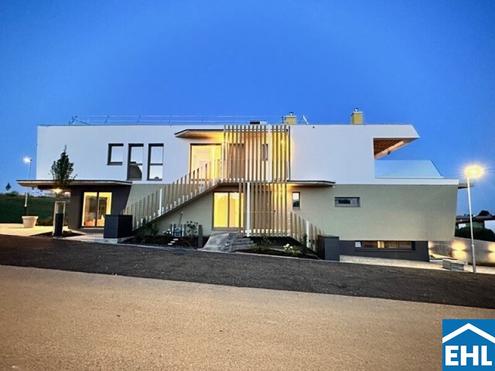 Exklusive 4-Zimmer-Wohnung mit Fernblick, nachhaltiger Technologie & luxuriöser Ausstattung In einem architektonisch anspruchsvollen Neubau mit insgesamt nur fünf modernen Einheiten drei Wohnungen und zwei Büros gelangt diese außergewöhnliche 4-Zimmer-Wohnung zum Verkauf. Das Projekt vereint nachhaltige Gebäudetechnologie, kompromisslose Bauqualität und ein exklusives Wohnambiente auf höchstem Niveau. Großzügige, bodentiefe Fensterflächen von Josko durchfluten die Wohnräume mit Tageslicht und eröffnen einen beeindruckenden Fernblick. Die lichte Raumhöhe von ca. 2,60 m unterstreicht das offene, elegante Raumgefühl. Elektrischer Sonnenschutz sorgt dabei jederzeit für optimalen Wohnkomfort. Die Wohnung verfügt über eine großzügige Terrasse, die den Wohnraum nach außen erweitert und zum Entspannen oder repräsentativen Empfangen einladen. Ein Gemeinschaftspool mit Gegenstromanlage bietet zusätzlichen Luxus und Erholungsqualität in privater Atmosphäre. Für ganzjährigen Komfort sorgen Fußbodenheizung sowie Deckenkühlung, kombiniert mit modernster, nachhaltiger Haustechnik. Edle Materialien wie ein Parkettboden von Weitzer, eine hochwertige Sanitärausstattung und ein stilvoll integrierter Kamin unterstreichen den exklusiven Charakter dieser Immobilie. Dieses außergewöhnliche Objekt richtet sich an Käufer mit höchsten Ansprüchen an Qualität, Design, Nachhaltigkeit und Privatsphäre ein Zuhause, das urbanen Luxus und Ruhe perfekt vereint. Provisionsfrei für den Käufer! Wir weisen darauf hin, dass zwischen dem Vermittler und dem zu vermittelnden Dritten ein familiäres oder wirtschaftliches Naheverhältnis besteht. Der Vermittler ist als Doppelmakler tätig.Infrastruktur / EntfernungenGesundheitArzt