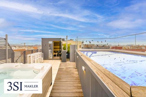 Willkommen in Ihrem neuen Zuhause im Herzen von Wien! Diese atemberaubende Penthouse-Wohnung in einem modernen Gebäude, bietet Ihnen ein luxuriöses und komfortables Wohngefühl auf höchstem Niveau. Auf zwei großzügigen und lichtdurchfluteten Etagen, barrierefrei verbunden mit einem Lift, der per Schlüssel direkt in beide Ebenen des Penthouse fährt, erstrecken sich drei Schlafzimmer mit sehr edlen Bädern, zwei Gäste Toiletten und viel Stauraum, sowie Rückzugsmöglichkeiten für das alltägliche Leben. Das Highlight dieser Immobilie sind definitiv die 3 großzügigen Terrassen, die Ihnen einen atemberaubenden Blick über die Dächer von Wien bieten, sowie der der Außenpool, der Whirlpool und die Sauna. Hier können Sie gemütlich entspannen, ein Glas Wein genießen oder mit Freunden und Familie grillen. Die perfekte Kombination aus Innen- und Außenbereich für alle Jahreszeiten. Zwei Tiefgaragenplätze sind inkludiert eine absolute Rarität in Wien. Ebene 0 Großzügiger Flur | Garderobe | Entrée | Gäste-WC | 1 Bad mit Dusche 2 Schlafzimmer 1 Ankleide oder Arbeitsraum | zusätzliches 3. Schlafzimmer möglich 1 Masterbad mit Dusche und Badewanne Stiege Ebene 1 2. Liftzugang Offener Wohn-, Ess- und Kochbereich mit Kamin 2 großzügige Aussichts-Terrassen (inkl. 1 Frühstücksterrasse mit Stephansdomblick) Gäste-WC | Stauraum Stiege zum Rooftop Ebene 2 Penthouse-Rooftop Sonnenliegefläche Außenschwimmbecken 2,90 m x 4,90 und Sauna mit Stadt- und Stephansdomblick Whirlpool Lage Erstklassige Traumlage im Vierten Wiener Gemeinde Bezirk Ruhige Rooftop-Lage mit gigantischem Stadtblick | Stephansdomblick | Fernblick | Panoramablick und die grünen Weinberge und bis zu Alten Donau Fußläufige Nähe zu dem berühmten Wiener Naschmarkt und in die Wiener Innenstadt sowie zum Hauptbahnhof Umgeben von einer Vielfalt an Restaurants, grünen Plätzen und Cafés zum Flanieren sowie einer historischen schönen Kirche Premium-Nahversorger für den täglichen Bedarf in wenigen Metern fußläufig erreichbar Straßenbahnstation und der Hauptbahnhof fußläufig erreichbar Perfekte Lage für Familie, Geschäftsleute, Studenten und Ruhesuchende Zuhause Vorhanden sind zwei zugeordneter Garagenstellplätze, die verpflichtend dazu zu erwerben sind. Die beiden großzügig dimensionierten Parkplätze befinden sich direkt im Haus und bieten komfortablen, witterungsgeschützten Zugang zur Immobilie. Ein Stellplatz ist für 75.000 € mit zu erwerben. Diese Stellplätze stellen nicht nur eine bequeme Parkmöglichkeit in zentraler Lage dar, sondern auch eine nachhaltige Wertanlage insbesondere in einem Gebiet mit hoher Parkplatzknappheit. Wir weisen darauf hin, dass zwischen dem Vermittler und dem zu vermittelnden Dritten ein familiäres oder wirtschaftliches Naheverhältnis besteht. Der Vermittler ist als Doppelmakler tätig.Infrastruktur / EntfernungenGesundheitArzt