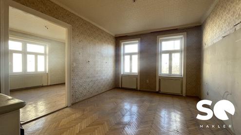 Zum Verkauf gelangt eine helle 2-Zimmer-Wohnung in einem gepflegten Altbauhaus, welches vor wenigen Jahren umfassend saniert wurde. In diesem Zuge erfolgte auch ein Dachgeschossausbau. Die Wohnung befindet sich im 3. Stock mit Lift und bietet einen schönen Ausblick auf eine Parkanlage. Die Einheit ist sanierungsbedürftig und bietet großes Potenzial zur individuellen Gestaltung. Eckdaten: Wohnfläche: ca. 62 m² Zimmer: 2 Küche: separat WC: vorhanden Stockwerk: 3. Liftstock Zustand Wohnung: sanierungsbedürftig Zustand Haus: Altbau, vor wenigen Jahren saniert Raumaufteilung: Vorraum Zwei Zimmer Separate Küche WC Kosten: Kaufpreis: € 209.000, Monatliche Betriebskosten gesamt: € 557,98 bestehend aus: Betriebskosten inkl. USt: € 262,75 Reparaturrücklage: € 159,24 Sanierungsdarlehen: € 135,99 Für die Sanierung des Hauses inkl. Dachgeschossausbau wurde ein Kredit mit ca. 10 Jahren Laufzeit aufgenommen. Aktuell sind davon noch rund 7 Jahre über die monatlichen Betriebskosten zurückzuzahlen. Diese Immobilie eignet sich ideal für Eigennutzer, Anleger oder Projektentwickler, die den Altbaucharme schätzen und zusätzliches Entwicklungspotenzial suchen. Besonderheit: Im darüberliegenden Stockwerk befindet sich eine gleich große Wohnung mit identischem Grundriss. Bei Interesse besteht die Möglichkeit, beide Einheiten zu erwerben und vorbehaltlich behördlicher Genehmigungen zu einer Maisonette-Wohnung zusammenzuführen. Kontakt: Für nähere Informationen oder einen Besichtigungstermin kontaktieren Sie bitte Frau Ilana Meirov +43 676 84 84 52201 meirov@stadtquartier.at Weitere Objekte finden Sie unter: www.stadtquartier.at Wir weisen darauf hin, dass zwischen dem Vermittler und dem zu vermittelnden Dritten ein familiäres oder wirtschaftliches Naheverhältnis besteht. Der Vermittler ist als Doppelmakler tätig.Infrastruktur / EntfernungenGesundheitArzt