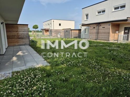 Miete mit Kaufoption, Erstbezug, Fertigstellung Oktober 2025! Hier wurden 16 Doppelhaushälften mit großzügigen Freiflächen errichtet. Die Erschließung der Reihenhäuser erfolgt über überdachte Eingangsbereiche, welche mit einem Außenabstellraum kombiniert sind. Die Komponenten der Haustechnik sind unter der Treppe situiert. Ebenso ist auch das helle Wohnzimmer mit der Kochnische vom Vorraum aus direkt begehbar. Im Obergeschoß befinden sich drei Schlafzimmer und ein Bad mit Badewanne. Ausstattung: Fußbodenheizung Luft-Wasser Wärmepumpe Photovoltaikanlage kontrollierte Wohnraumlüftung usw. Weiters werden jeder Wohneinheit zwei freie KFZ-Stellplätze zugeordnet. Für jede Wohneinheit ist außerdem ein zusätzlicher Außenabstellraum neben den KFZ-Stellplätzen vorgesehen, der auch für Gartengeräte, Mülltonnen und Fahrräder genutzt werden kann. Besichtigungen ab August 2025, Fertigstellung ab Oktober 2025! Der Immobilienmakler erklärt, dass er entgegen dem in der Immobilienwirtschaft üblichen Geschäftsgebrauch des Doppelmaklers einseitig nur für den Vermieter tätig ist.Infrastruktur / EntfernungenGesundheitArzt