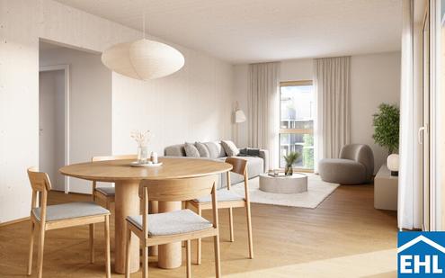 Im Grünen Mödling Grüne Stadtvillen Nachhaltig wohnen. Urban leben. Natürlich ankommen. Mit Sommer 2026 werden vier baulich voneinander getrennte Stadtvillen in moderner Holzbauweise bezugsfertig. Die jeweils viergeschossigen Gebäude umfassen insgesamt 47 hochwertig geplante Wohnungen mit zwei bis fünf Zimmern und bieten zeitgemäßen Wohnraum für unterschiedlichste Lebensmodelle. Eine eingeschossige Tiefgarage mit 71 Stellplätzen steht den Bewohnerinnen und Bewohnern zur Verfügung. Die innovative Holzbauweise setzt neue Maßstäbe in puncto Nachhaltigkeit und Wohnqualität. Im Inneren der Wohnungen bleibt der natürliche Baustoff teilweise sichtbar und schafft eine warme, entschleunigende Raumatmosphäre mit offenem, wohnlichem Charakter. Durchdachte Grundrisse sorgen für optimale Raumnutzung und hohen Komfort. Alle Wohnungen verfügen über private Freiflächen und verbinden so urbanes Wohnen mit einem naturnahen Lebensgefühl. Ergänzt wird das nachhaltige Gesamtkonzept durch Photovoltaikanlagen auf den Dächern sowie eine moderne Geothermieanlage, die das Gebäudeensemble klimaschonend mit Wärme versorgt. Die versetzte Anordnung der Stadtvillen fügt sich harmonisch in die Umgebung ein und schafft großzügige, offene Vorplätze sowie gemeinschaftliche Freibereiche. Kinderspielplätze, Gemeinschaftsgärten und liebevoll gestaltete Grünräume prägen den Zwischenraum der Gebäude. Eine teilweise Fassadenbegrünung unterstreicht das grüne, zukunftsorientierte Erscheinungsbild des Projekts. So entsteht ein Wohnumfeld, das zum Verweilen einlädt, Begegnungen fördert und ein lebendiges, nachbarschaftliches Miteinander ermöglicht ein Zuhause für alle, die Nachhaltigkeit, Komfort und Lebensqualität vereinen möchten. Ganz in der Nähe der Anlage befindet sich ein weiteres Projekt Am Fliegenspitz in dem wir ebenso Eigentums- sowie Vorsorgewohnungen anbieten. Für nähere Informationen hierfür stehen wir selbstverständlich auch gerne zur Verfügung. Fertigstellung: voraussichtlich Sommer 2026 In der hauseigenen Tiefgarage stehen Stellplätze zum Ankauf zur Verfügung. Kaufpreise ab EUR 25.000,- Der Verkauf erfolgt provisionsfrei für den Käufer! Das Projekt: 47 Eigentums- und Vorsorgewohnungen Wohnungsgrößen von 53 m² bis 104 m² Tiefgarage mit 71 Stellplätzen (Installation einer E-Ladestation möglich) Gemeinschaftliche Freibereiche wie Kinderspielplätze und Gemeinschaftsgärten Fahrrad- und Kinderwagenabstellräume Eine Einlagerungsmöglichkeit je Wohnung im Untergeschoss Private Freiflächen in Form von Gärten, Balkonen oder Terrassen Die Ausstattung: Fußbodenheizung und -temperierung mittels Sole-Wasser-Wärmepumpe Photovoltaikanlagen Hochwertige Eichenparkettböden Elegantes Feinsteinzeug in den Nassräumen Holz-Holz-Fenster mit 3-fach-Verglasung Außenliegender, elektrisch betriebener Sonnenschutz Markisen auf den Balkonen mit automatischer Windüberwachung im Dachgeschoss Vorbereitung zur nachträglichen Installation von Split-Klimageräten in allen Wohnungen Die Lage & Infrastruktur: Die Stadtvillen liegen in einer zentralen und zugleich angenehmen Wohnlage in Mödling, einer Stadt mit ausgezeichneter Infrastruktur und hoher Lebensqualität. Die Innenstadt ist in 10-15 Minuten zu Fuß oder in 5-10 Minuten mit Rad, Auto und Öffis erreichbar. Auch Wien erreicht man nach nur rund 45 Minuten mit dem Auto oder Zug. Öffentliche Anbindung: Die Stationen der Buslinien 259 und 263 befinden sich nur 4 Gehminuten von der Haustüre entfernt. Der Bahnhof Mödling ist dadurch schnell erreichbar und bietet u.a. eine schnelle Verbindung nach Wien. Nahversorgung: Supermärkte, Bäckereien, Apotheken sowie weitere Geschäfte des täglichen Bedarfs befinden sich im nahen Umfeld. Auch Cafés und Restaurants sind rasch erreichbar. Medizinische Versorgung: Eine sehr gute medizinische Infrastruktur mit Allgemein- und Fachärzten, Apotheken sowie dem Landesklinikum Mödling sorgt für umfassende Versorgung. Schulen und Kindergärten: Kindergärten sowie Volks- und weiterführende Schulen sind ebenfalls teils fußläufig erreichbar ideal für Familien. Einen detaillierteren Einblick finden Sie auf unserer EHL-Projekthomepage! Wir weisen darauf hin, dass zwischen dem Vermittler und dem zu vermittelnden Dritten ein familiäres oder wirtschaftliches Naheverhältnis besteht. Der Vermittler ist als Doppelmakler tätig.Infrastruktur / EntfernungenGesundheitArzt