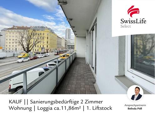 Sanierungsbedürftige 2 Zimmer Wohnung | Loggia ca.11,86m² | 1. Liftstock