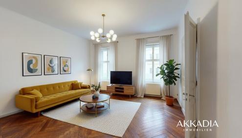 Diese Wohnung empfängt mit einem großzügigen Vorraum, von dem aus die Räume übersichtlich erschlossen werden. Die Aufteilung ist funktional gestaltet und ermöglicht eine praktische Nutzung im Alltag. Zur Panzergasse ausgerichtet liegen drei Zimmer, darunter ein geräumiges Wohnzimmer sowie zwei Schlafzimmer mit angenehmen Proportionen. Das Wohnzimmer und eines der Schlafzimmer sind getrennt begehbar und bieten dadurch flexible Nutzungsmöglichkeiten. Der Vorraum, die Küche und das Badezimmer sind verfliest und pflegeleicht ausgeführt. Die Küche bietet ausreichend Platz für einen Esstisch für vier Personen und ist zum ruhigen Innenhof mit schönem Baumbestand orientiert, was eine besonders angenehme Atmosphäre schafft. In den Wohnräumen ist hochwertiger, dunkler Echtholzparkett in großformatiger Fischgrätverlegung verlegt, der den klassischen Altbaucharakter stilvoll unterstreicht. Doppelflügelige Altbautüren ergänzen das stimmige Gesamtbild. Auch das Haus selbst, ein repräsentativer Altbau aus der Zeit um 1900, überzeugt mit großzügigen Gängen, einem gepflegten Stiegenhaus und einem begrünten Innenhof mit altem Baumbestand, der der Liegenschaft eine ruhige und wohnliche Ausstrahlung verleiht. Der Vermittler ist als Doppelmakler tätig.Infrastruktur / EntfernungenGesundheitArzt