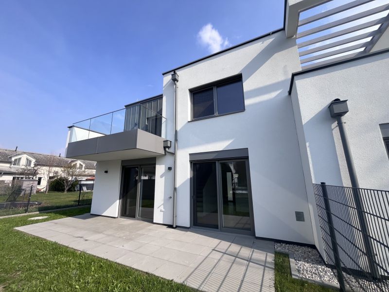 Im Herzen von Guntramsdorf gelangt eine neu errichtete, moderne Doppelhaushälfte zur Vermietung. Die großzügige Wohnfläche verteilt sich auf drei lichtdurchflutete Zimmer und bietet eine gelungene Kombination aus zeitgemäßem Design, offener Bauweise und behaglichem Wohnkomfort. Ob Familie, Paar oder Einzelperson ? diese Immobilie passt sich flexibel unterschiedlichen Wohnbedürfnissen an. So können etwa die beiden größeren der drei Zimmer bei Bedarf einfach geteilt werden, wodurch insgesamt bis zu fünf Zimmer im Erdgeschoß und Obergeschoß möglich sind. Die durchdachte Raumaufteilung umfasst zwei Badezimmer sowie zwei WCs und gewährleistet ein hohes Maß an Alltagskomfort. Hochwertige Materialien und moderne Haustechnik schaffen ein stilvolles Ambiente mit Wohlfühlcharakter. Alle Leitungen für Highspeed-Internet, eine Klima-Anlage und auch für Photovoltaik sind bereits verlegt, sodass eine dbzgl. Ausstattung auf Wunsch problemlos und kostengünstig möglich ist. Zusätzlich verfügt das Objekt über einen voll ausgebauten Wohnkeller. Dieser besteht aus zwei großen, getrennt begehbaren Räumen, die bei Bedarf ebenfalls auf bis zu vier Räume aufteilbar sind. Ideal für großzügige Hobby-Räume, einen Weinkeller, eine Sauna- und Spa-Landschaft, oder ein Gästezimmer mit eigener Dusche/WC. Alle dafür notwendigen Elektroinstallationen, Zu- und Abflüsse sind ebenfalls bereits vorhanden. Der kleine, äußerst pflegeleichte Garten lädt zum Entspannen und Verweilen ein. Genießen Sie warme Tage beim Grillen mit Freunden auf der großzügigen Terrasse im Grünen, oder ruhige Stunden mit Blick auf die Weinberge auf einer weiteren großen Terrasse im ersten Stock. Ein Biohort-Gartenhaus mit Licht- und Stromanschluss kann als kleine Werkstätte, sowie zum sicheren Verstauen und Laden von E-Bikes genutzt werden. Das Gartenhaus ist in das EVVA-Schlüsselsystem des Hauses integriert. Zwei überdachte Carport-Stellplätze sowie ein weiterer Gäste-Parkplatz direkt vor dem Haus, mit großem, fernbedienbaren elektrischem Schiebetor sorgen für komfortables Parken. Eine Starkstromsteckdose sowie eine Wallbox-Vorbereitung zum Laden von Elektro-Autos sind ebenfalls vorhanden.Guntramsdorf ? Wohnen in Top-Lage mit perfekter Anbindung Guntramsdorf vereint naturnahes Wohnen mit ausgezeichneter Nähe zur Stadt. Die Wiener Innenstadt, Baden, Mödling und die Shopping City Süd sind dank hervorragender Verkehrsanbindung sowohl mit dem Auto als auch mit öffentlichen Verkehrsmitteln (Bus, Schnellbahn, Badnerbahn, Aspangbahn) rasch erreichbar. Gleichzeitig profitieren Sie von der Ruhe und hohen Lebensqualität einer gewachsenen Weinbau-Gemeinde mit hervorragender Infrastruktur. Das Haus befindet sich direkt im Ortszentrum, äußerst ruhig gelegen am Ende einer Sackgasse. In unmittelbarer Umgebung und zu Fuß erreichbar befinden sich Ärzte, Apotheke, Banken, Kindergärten, Schulen (VS, MS, AHS, Musikschule), Supermärkte, Bäckereien, Cafés, Heurigen und Restaurants, Sport- und Freizeitanlagen sowie Badeteiche.?Luft-Wärmepumpe ?Fußbodenheizung ?Echtholz-Fertigparkett und hochwertige Fliesenböden ?Alu-Kunststoff-Fenster mit 3-fach-Isolierverglasung oU-Wert (Fenster) ca. 0,96 W/m²K oinnen und außen bündig oSicherheitsverglasung gemäß gesetzlichen Vorgaben, insbesondere bei raumhohen Elementen oFarbe: innen weiß, außen anthrazit eloxiert ?Elektrische Raffstores im Erdgeschoss (Südwestseite) ?Elektrische Außenrollos im Obergeschoss ?Flächenbündige Innentüren ?Badezimmer mit Dusche und Badewanne ?Voll ausgebauter Wohnkeller (Fußbodenheizung, alle Installationen) vorhandenProvision: Gemäß Erstauftraggeberprinzip bezahlt der Abgeber die Provision.