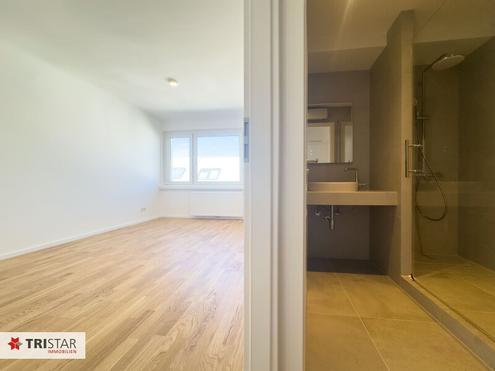 Vollsanierte 2-Zimmer-Wohnung mit Einbauküche | 5. OG | Lift | 1120 Wien-Meidling Zum Verkauf gelangt eine vollständig sanierte 2-Zimmer-Wohnung im 5. Obergeschoss eines Wohnhauses in Wien-Meidling (1120). Die Wohnung befindet sich im Wohnungseigentum und wurde in den Jahren 2025/26 umfassend erneuert. Sie ist sofort bezugsfertig. WOHNRÄUME Das Wohnzimmer mit 22,23 m² bietet durch seine Lage im 5. Obergeschoss einen freien Ausblick über die Wiener Dächer. Das zweite Zimmer mit 15,96 m² ist als Schlafzimmer oder Home-Office nutzbar. Beide Räume sind mit neuem Eiche-Parkett ausgestattet. Durchgehend neue Innentüren mit Chromdrückern sowie eine elegante Glasfüllung-Tür zur Küche unterstreichen die hochwertige Ausführung. KÜCHE Die separate Küche (6,04 m²) ist vollständig ausgestattet: maßgefertigte Einbauküche in Sage-Grün mit hellem Holz-Arbeitsblatt, schwarzem Workstation-Spülbecken, Induktionskochfeld, Backrohr und Dunstabzug. Ein Waschmaschinenanschluss ist vorbereitet und in die Küchenmöbel integriert. Großformat-Fliesenboden. BAD & WC Bad (2,64 m²) und WC (1,44 m²) sind voneinander getrennt. Das Bad verfügt über eine Walk-in Dusche mit Glasabtrennung sowie Villeroy & Boch Sanitärkeramik. Das separate WC ist mit einem wandhängenden WC (Geberit Unterputzspülung) ausgestattet. Beide Nassbereiche sind vollflächig mit großformatigen Fliesen in Betonoptik verkleidet. VORRAUM Der Vorraum (4,00 m²) bietet ausreichend Platz für Garderobe und Stauraum. Eiche-Parkett. ELEKTRIK Die gesamte Elektroinstallation wurde erneuert. Der Elektrobefund liegt vor und ist in Ordnung (ausgestellt 23.02.2026). EXTRAS Lift im Haus Kellerabteil inklusive Gemeinschaftliche Waschküche im Haus Wir weisen darauf hin, dass zwischen dem Vermittler und dem zu vermittelnden Dritten ein familiäres oder wirtschaftliches Naheverhältnis besteht. Der Vermittler ist als Doppelmakler tätig.Provision: