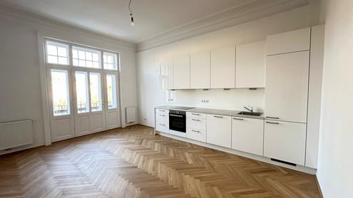 Die Wohnung präsentiert sich als großzügig geschnittene Altbauwohnung mit modernem Ausstattungsniveau und klar strukturierter Raumaufteilung. Vom weitläufigen Vorraum aus sind sämtliche Räume zentral begehbar, was eine besonders effiziente und flexible Nutzung ermöglicht. Insgesamt umfasst die Wohnung fünf Zimmer, die sich ideal als Wohn-, Schlaf-, Kinder- oder Arbeitszimmer eignen. Die Raumgrößen sind gut proportioniert, mehrere Zimmer wirken besonders großzügig und profitieren von großen Fensterflächen sowie viel Tageslicht. Der Küchenbereich ist offen in einen der Wohnräume integriert und mit einer modernen Einbauküche ausgestattet. Diese überzeugt durch klare Linien, hochwertige Geräte und ausreichend Stauraum. Das Badezimmer ist zeitgemäß ausgeführt und verfügt sowohl über eine Badewanne als auch über eine separate Dusche sowie zwei Waschbecken.Ein besonderes Highlight ist die großzügige Loggia, die von zwei Zimmern sowie direkt vom Vorraum aus begehbar ist. Sie bietet ausreichend Platz für eine gemütliche Sitzgelegenheit und stellt einen attraktiven, ruhigen Außenbereich dar. Die Ausstattung kombiniert klassische Altbauelemente wie Fischgrätparkett und hohe Räume mit moderner Innenausstattung. Große Fenster sorgen für eine helle und angenehme Wohnatmosphäre. Insgesamt handelt es sich um eine großzügige 5-Zimmer-Wohnung mit weitläufigem Vorraum, moderner Küche, Badezimmer mit Wanne und Dusche sowie einer gut angebundenen Loggia. Lage Das Objekt befindet sich in der Weißgerberlände 40 und damit direkt am Donaukanal sowie an der Grenze des 3. Bezirks zum 2. Bezirk mit der Grünruheoase Prater. Zahlreiche Geschäfte des täglichen Bedarfs wie Supermärkte, Apotheken, Banken, uvm. befinden sich in der näheren Umgebung. Die Straßenbahnlinie 1, welche fußläufig erreichbar ist, verbindet die Wohnung mit der Inneren Stadt sowie der Endstation Stefan-Fadinger-Platz. Ansprechpartner Frau Doris Kurzweil || +43 699 17 55 66 16 || dk@jpi.at Wir weisen darauf hin, dass wir entgegen dem in der Immobilienwirtschaft üblichen Geschäftsgebrauch des Doppelmaklers – einseitig nur für den Vermieter tätig sind und wir mit dem Abgeber in ständiger Geschäftsbeziehung stehen und schon aus diesem Grund ein wirtschaftliches Naheverhältnis vorliegt.Provision: provisionsfrei
