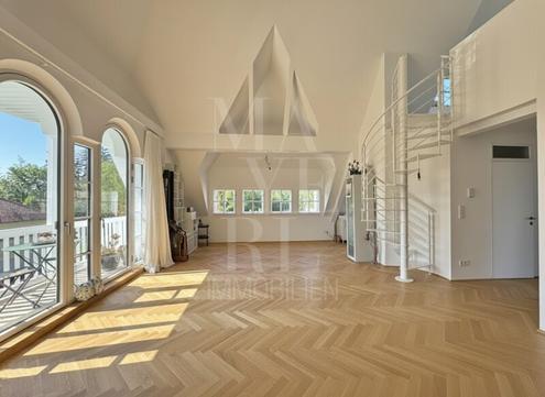 Exklusive Dachgeschosswohnung mit Rundumblick in Glanzing Top Ausstattung - Große Terrasse mit Weitblick Balkon & Ruhelage im Grünen Diese außergewöhnliche Wohnung befindet sich in einem charmanten Haus aus den 1930er Jahren und wurde 1981 erstmals ausgebaut. Im Jahr 2024/2025 erfolgte eine umfassende Generalsanierung mit hochwertigsten Materialien und ist nun vergleichbar mit einem ERSTBEZUG. Raumaufteilung: Die Wohnung erstreckt sich über zwei Etagen und ist über einen eigenen Zugang über das Stiegenhaus erreichbar. 1. Dachgeschoss: - Großzügiges, lichtdurchflutetes Vorzimmer mit Wienblick - Wohn-/Essbereich mit ca. 43 m² und Ausgang auf den zum südostseitigen Balkon - Zwei Schlafzimmer - Separate Küche - Tageslicht-Badezimmer mit Dusche - Separate Toilette 2. Dachgeschoss: - Weiteres Galerie-Zimmer mit Ausgang auf die großzügige Terrasse mit traumhaftem Fernblick Ausstattung: - Neue Gasetagenheizung mit Fußbodenheizung - Raumhöhen von bis zu 6,5 Meter - Neue 3-fach Holz/Alufenster bzw. neue Velux Dachflächenfenster - Anschluss für Kamin im Wohnzimmer - Komplett neue Elektroverkabelung inkl. SAT-Schüssel - Großzügiger Gemeinschaftsgarten (ca. 350 m²) - Geräumiges trockenes KellerabteilNoch nichts gefunden Wir informieren Sie über geeignete Immobilienangebote noch vor allen anderen. Legen Sie jetzt Ihren individuellen Suchagenten unter folgendem Link an. Wir schicken Ihnen passende Immobilien exklusiv vorab zu. Suchagent anlegen - https://realkanzlei-hildegard-mayerl-eva-krulis.service.immo/registrieren/de Hinweis gemäß Energieausweisvorlagegesetz: Ein Energieausweis wurde vom Eigentümer bzw. Verkäufer, nach unserer Aufklärung über die generell geltende Vorlagepflicht, sowie Aufforderung zu seiner Erstellung noch nicht vorgelegt. Daher gilt zumindest eine dem Alter und der Art des Gebäudes entsprechende Gesamtenergieeffizienz als vereinbart. Wir übernehmen keinerlei Gewähr oder Haftung für die tatsächliche Energieeffizienz der angebotenen Immobilie. Wir weisen darauf hin, dass zwischen dem Vermittler und dem zu vermittelnden Dritten ein familiäres oder wirtschaftliches Naheverhältnis besteht. Der Vermittler ist als Doppelmakler tätig.Infrastruktur / EntfernungenGesundheitArzt