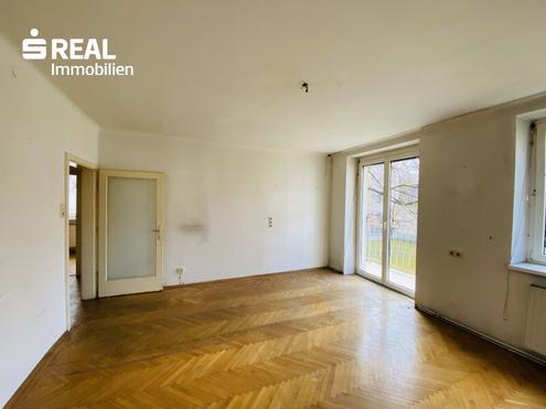 Die Eckwohnung mit ca. 65 m² Wfl. befindet sich in zentraler Lage in der 1. Etage eines gepflegten Wohnhauses. Der Zustand ist dem Alter entsprechend und sanierungsbedürftig. Sie verfügt derzeit über einen Westbalkon von ca. 3,30 m², welcher demnächst abgerissen und durch einen neuen Beistellbalkon im Ausmaß von ca. 9,90 m² ersetzt wird. Die anteiligen Kosten sind seitens der Verkäuferseite bereits bezahlt. Der helle und freundliche Wohnbereich sowie die zwei Schlafzimmer sind mit Fischgrätparkett versehen. Das Badezimmer ist mit einer Badewanne und einem Fenster ausgestattet. Die Beheizung erfolgt mittels Fernwärme, die Kosten werden direkt vom Energieanbieter vorgeschrieben. Wir weisen darauf hin, dass zwischen dem Vermittler und dem zu vermittelnden Dritten ein familiäres oder wirtschaftliches Naheverhältnis besteht.Infrastruktur / EntfernungenGesundheitArzt