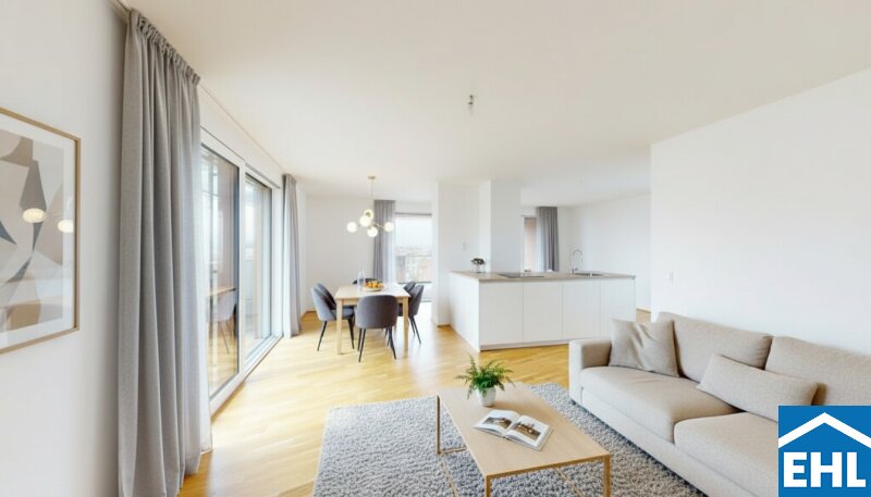 THEOs ? Urban leben. Grün genießen. Zuhause ankommen. Direkt am großen Park der Theodor Körner Kaserne liegt das THEOs, das neue Wohnquartier in der Spallartgasse, das urbane Leichtigkeit mit grüner Lebensqualität verbindet? und genau richtig für alle, die spektakuläre Ausblicke schätzen! Das Projekt ?THEOs ? Willkommen im Park? wurde 2023 mit dem renommierten Award ?Ausgezeichneter Wohnungsbau? des Callwey Verlags in der Kategorie Quartiersentwicklung ausgezeichnet. Wohnen über den Dächern ? mit Weitblick und Stil In der 10. Etage von Stiege 1 befindet sich die exklusive 4-Zimmer-Eigentumswohnung TOP 93 mit ca. 134?m² Wohnnutzfläche, einem umlaufenden Balkon von ca. 41?m² sowie einer zusätzlichen Terrasse mit ca. 14?m². Ein echtes Highlight ist der spektakuläre Weitblick ? von der Otto-Wagner-Kirche bis zur Inneren Stadt Wiens. Diese Wohnung kombiniert Großzügigkeit, Ruhe und Panorama in einer Form, die in Wien ihresgleichen sucht. ERSTBEZUG! Mit WEITBLICK!! 4 Zimmer inkl. großzügigem Wohn-/Essbereich mit offener Küche 2 stilvolle Badezimmer (eines mit Badewanne, eines mit bodenebener Dusche) Separate Toilette und Abstellraum Lichtdurchflutete Räume dank Fensterfronten auf mehreren Seiten Umlaufender Außenbereich: Balkon, Terrasse und zusätzliche Freiflächen Raumhöhe ca. 2,65?m ? für ein außergewöhnlich großzügiges Wohngefühl Ausstattungshighlights Fußbodenheizung in allen Wohnräumen mit zentraler Raumregelung