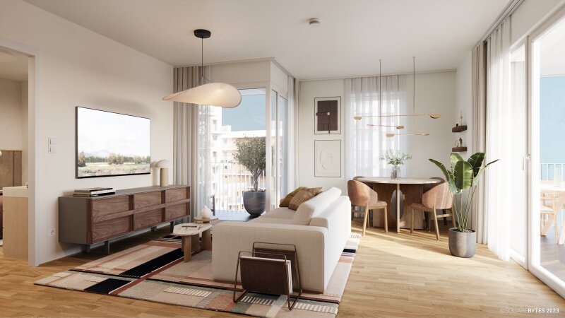 Wohnen im Village - Ankommen auf der Sonnenseite des Lebens. Profitieren Sie jetzt von dem einmaligen Wohn- und Baupaket der Bundesregierung und sparen Sie bis zu ? 11.500 an Gebühren!* (*1,1 % Grundbuchs- u. etwaige 1,2 % Pfandrechtseintragungsgebühr mit Bemessungsgrundlage bis ? 500.000 bei Eigenheimen) Das Wohnprojekt Village im Dritten - PEAK HOMES ist eine moderne Wohnhausanlage mit insgesamt 67 Eigentumswohnungen. Auf Grund der durchdachten Grundrisse und den maßgeschneiderten Raumlösungen bietet das PEAK HOMES Platz für Singles, Familien, Paare und Senioren. Die begrünte Gemeinschaftsterrasse, sowie weitere zahlreiche Gemeinschaftsräume sollen den Bewohnern einen Ort der Begegnung schaffen und die soziale Interaktion fördern. Alle Wohnungen sind mit Videosprechanlagen, einbruchshemmenden WK3-Sicherheitstüren, hochwertigen Eichenparkettböden sowie großformatigen Fliesen ausgestattet. Die Wohnungen werden durch eine sogenannte Bauteilaktivierung beheizt bzw. gekühlt. Ihre Vorteile vom Wohnen im ?Village im Dritten ? PEAK HOMES? helle, lichtdurchflutete Räume Wärmeversorgung über Geothermie mit Wärmepumpenanlagen sowie anteilig über die Fernwärme Wien. Eine gute Erklärung dazu finden Sie unter ,,Videos und Dokumente'' extensiv begrüntes Dach mit Photovoltaikanlage für die Allgemeinflächen künstlerisch ausgestaltete Metallpaneele mit floralem Muster als Sonnen- und Sichtschutz an der Fassade zweigeschossiges Foyer mit Lichtinstallation des österreichischen Künstlers Friedrich Biedermann Coworking-Spaces mit flexibler Büromöblierung ein Gemeinschaftsraum mit Küchenzeile eine Gemeinschaftsterrasse im 6. OG mit Sitzmöglichkeiten Grüngestaltung im Innenhof direkte Lage am Park Kleinkinderspielbereiche Fahrrad- und Kinderwagenabstellräume Bezugsfertig Die Lage eingebettet zwischen Landstraßer Gürtel und Otto-Preminger-Straße, befindet sich diese Wohnhausanlage