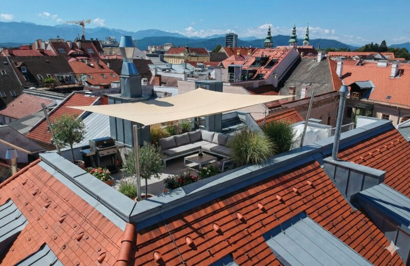 ***Prestigeträchtiges Penthouse über den Dächern von Klagenfurt*** Willkommen in einer der einzigartigsten Wohnungen der Stadt! Dieses prestigeträchtige Penthouse erhebt sich über die Dächer von Klagenfurt und bietet ein Wohngefühl der Extraklasse. Direkt in der Innenstadt gelegen, vereint es urbanes Leben mit absolutem Komfort und Privatsphäre. Die großzügige Terrasse ist ein echtes Highlight und bietet einen traumhaften 360-Grad-Weitblick über die Stadt und die umliegenden Berge. Hier können Sie ungestört die Sonne genießen, Feste feiern oder einfach nur die atemberaubende Aussicht auf sich wirken lassen. Ein Speiselift, der direkt bis auf die Dachterrasse führt, sorgt dabei für höchsten Komfort. Der großzügige Wohn-Essbereich ist der Hauptaufenthaltsraum dieser Wohnung gepaart mit einer zeitlosen Küche und eigenem Hauswirtschaftsraum bietet er nicht nur ausreichend Platz, sondern hat alle wichtigen Bereiche auf einer Ebene. Mit einer Klimaanlage in jedem Schlafzimmer, können Sie selbst an den heißesten Tagen des Jahres in kühlen Räumen entspannen. Die zwei Bäder, wovon eines über das Masterbedroom mit eigenem Schrankbereich direkt begehbar ist, bieten Komfort und Platz für die ganze Familie. Eine eigene Sauna mit Fitnessraum ermöglicht Wellness auf höchstem Niveau direkt in den eigenen vier Wänden. Dieses Penthouse ist nicht nur ein Zuhause, sondern ein Statement für exklusives Wohnen im Herzen von Klagenfurt. Baujahr: Dachgeschossausbau: 2003/2004 (Gebäude steht unter Denkmalschutz) Flächen: rd. 320 m² Wohnfläche auf 2 Ebenen rd. 30 m² Dachterrasse mit 360° Rundumblick über Klagenfurt Ausstattung: - Parkett- und Fliesenböden - ZH-Fernwärme mit Radiatoren / Sanitärbereiche + Wintergarten zusätzlich Fußbodenheizung - DAN-Küche komplett möbliert inkl. Geräten (Dampfgarer etc.) - Bäder: - EG: Wanne, Dusche, WC, Bidet, Doppelwaschtisch // OG: Wanne, Dusche, Bidet, WC separat - Isolierglasfenster-Holz / Doppelkastenfenster - Sauna-/ Fitnessraum