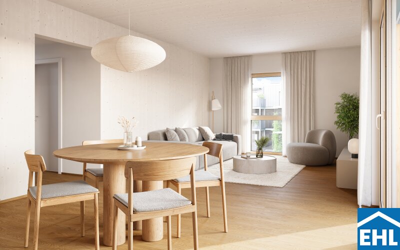 Im Grünen Mödling ? Grüne Stadtvillen Nachhaltig wohnen. Urban leben. Natürlich ankommen. Mit Sommer 2026 werden vier baulich voneinander getrennte Stadtvillen in moderner Holzbauweise bezugsfertig. Die jeweils viergeschossigen Gebäude umfassen insgesamt 47 hochwertig geplante Wohnungen mit zwei bis fünf Zimmern und bieten zeitgemäßen Wohnraum für unterschiedlichste Lebensmodelle. Eine eingeschossige Tiefgarage mit 71 Stellplätzen steht den Bewohnerinnen und Bewohnern zur Verfügung. Die innovative Holzbauweise setzt neue Maßstäbe in puncto Nachhaltigkeit und Wohnqualität. Im Inneren der Wohnungen bleibt der natürliche Baustoff teilweise sichtbar und schafft eine warme, entschleunigende Raumatmosphäre mit offenem, wohnlichem Charakter. Durchdachte Grundrisse sorgen für optimale Raumnutzung und hohen Komfort. Alle Wohnungen verfügen über private Freiflächen und verbinden so urbanes Wohnen mit einem naturnahen Lebensgefühl. Ergänzt wird das nachhaltige Gesamtkonzept durch Photovoltaikanlagen auf den Dächern sowie eine moderne Geothermieanlage, die das Gebäudeensemble klimaschonend mit Wärme versorgt. Die versetzte Anordnung der Stadtvillen fügt sich harmonisch in die Umgebung ein und schafft großzügige, offene Vorplätze sowie gemeinschaftliche Freibereiche. Kinderspielplätze, Gemeinschaftsgärten und liebevoll gestaltete Grünräume prägen den Zwischenraum der Gebäude. Eine teilweise Fassadenbegrünung unterstreicht das grüne, zukunftsorientierte Erscheinungsbild des Projekts. So entsteht ein Wohnumfeld, das zum Verweilen einlädt, Begegnungen fördert und ein lebendiges, nachbarschaftliches Miteinander ermöglicht ? ein Zuhause für alle, die Nachhaltigkeit, Komfort und Lebensqualität vereinen möchten.