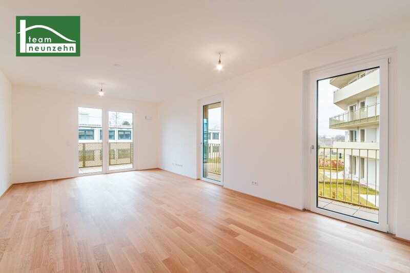 ?Hirschfeld ? Naturnah wohnen? Die gegenständliche Liegenschaft im Projekt ?Hirschfeld ? Naturnah wohnen? wurde im Jahr 2025 fertiggestellt und bietet Ihnen hochwertige Eigentumswohnungen und KFZ-Stellplätze. Die Wohnungen verfügen über 2-4 Zimmer und Wohnflächen von ca. 45m2 ? 96m2 zzgl. großzügigen Freiflächen von mindestens 9m2. Das Projekt grenzt nördlich an ein idyllisches Wald- und Wiesengebiet und südlich an die Gerasdorfer Straße. Auf Grund der Lage des Gebäudes in zweiter Reihe ist ein ruhiges Wohnambiente garantiert. Durch die vorhandene Infrastruktur und Nahversorgung eignen sich die Wohnungen sowohl für Familien als auch für Singles. Der Marchfeldkanal ist fussläufig in ca. 10 Minuten und die U-Bahn-Linie U1 - Leopoldau mit dem Bus in ca. 15 Minuten zu erreichen. Folgende Annehmlichkeiten werden Sie nicht mehr missen wollen: provisionsfreier Verkauf sofort beziehbar hochwertige und energieeffiziente Ausstattung (Fussbodenheizung- und Kühlung über Geothermie/Wärmepumpe, Sonnenschutz,?) Bauausführung durch das renommierte Bauunternehmen ?Strabag? durchdachte Grundrisse und Raumhöhen von ca. 2,60 (Regelgeschoss) ? 2,80m (EG + DG) Umfassende Allgemeinbereiche (Kinderwagen- und Fahrradraum, Spielplatz, modellierte Spielwiese mit Bäumen, Gemeinschaftsraum..) Ausstattungsstandard: Beim gegenständlichen Projekt steht vor allem der Punkt ?Energieeffizienz? im Mittelpunkt. Demnach wurde der Niedrig-Energie-Haus-Standard mit der Klima-aktiv-Zertifizierung ?Silber? erreicht. Fussbodenheizung- und Kühlung über Geothermie/Wärmepumpe PV-Anlage am Dach Hauseigene SAT-Anlage Gegensprechanlage 3-fach isolierverglaste Kunststoff-Alu-Fenster inkl. elektrischer Raffstores Sicherheitstüren inkl. Reedkontakt im EG und DG für die Nachrüstung einer Alarmanlage Parkettboden Eiche Hochwertige Sanitärausstattung mit bodenebener, gefliester Dusche bzw. Badewanne (je nach