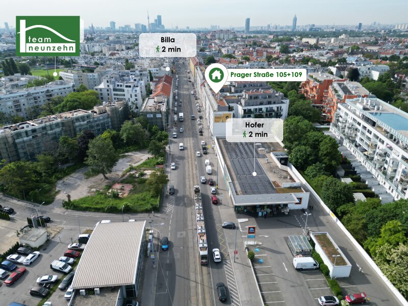 Moderne Neubauwohnungen nahe SCN, Lorettowiese und toller Infrastruktur - Straßenbahn 26 und S-Bahn Jedlersdorf in Gehweite!Erst 2019 wurde dieses hochwertige Wohngebäude entlang der Prager Straße mit ausgezeichneter Anbindung an die öffentlichen Verkehrsmittel, Nähe zu tollen Naherholungsgebieten und ausgezeichneter Infrastruktur in der direkten Umgebung errichtet.Nur wenige Gehminuten vom Gebäude entfernt hält die Straßenbahn-Linie 26, welche den 21. und 22. Bezirk miteinander verbindet. So gelangen Sie über diese in nur 4 Stationen zur U6 und S-Bahn in Floridsdorf, in 8 Stationen zur U-Bahn U1 Kagran mit dem dortigen Shopping- und Entertainmentpalast DONAUZENTRUM, aber auch bis an die Stadtgrenze nach Strebersdorf mit dessen Feldern und Hügeln. Auch die S-Bahn Station Jedlersdorf ist fußläufig und in unter 10 Gehminuten erreichbar. An dieser Station halten die Linien S3, S4 und S7.Die Lage an der belebten Prager Straße bietet Ihnen eine ausgezeichnete Infrastruktur und Nahversorgung, sodass alle Erledigungen praktisch in direkter Umgebung gemacht werden können. Besonders praktisch ist der direkt gegenüberliegende BILLA, die nur etwa 250m geradeaus entfernte Apotheke, Werkstätten und zahlreiche Restaurants. Sollte es einmal die größere Shopping-Tour sein sollen, bietet sich das in nur 2 Busstationen entfernt gelegene Shopping-Center-Nord an. Zum frische Luft Schnappen, Joggen, Radfahren oder auch mit Ihren Kleinen bietet sich die nahegelegene, 4 Fußballfelder große Lorettowiese und der angrenzende Aupark Jedlesee mit deren Abenteuerspielplatz, Skaterpark, Sitzgelegenheiten, Beachvolleyballplatz, Fußballplatz, Hundezone und viel Grün an. Für die Fußball-Begeisterten gibt es außerdem in unmittelbarer Nähe den Verein SC Columbia Floridsdorf und den FAC Platz. Die Neue Donau mit ihren Grillplätzen und langen Radwegen ist ebenfalls schnell erreicht.Das Gebäude selbst punktet durch moderne Architektur mit hochwertiger Ausstattung, großzügige Allgemeinbereiche und sinnvolle Energiesparmaßnahmen. Beheizt wird mittels effizienter Fernwärme-Heizkörper. In den 2 begrünten, luftigen Innenhöfen befinden sich einige Spielgeräte. Um wertvollen Wohnraum sinnvoll nutzen zu können, ist jeder Wohnung ein Kellerabteil als Stauraummöglichkeit zu geordnet, sowie der Zugang zu Fahrrad- und Kinderwagenabstellraum. Stellplätze in der hauseigenen Tiefgarage können optional angemie