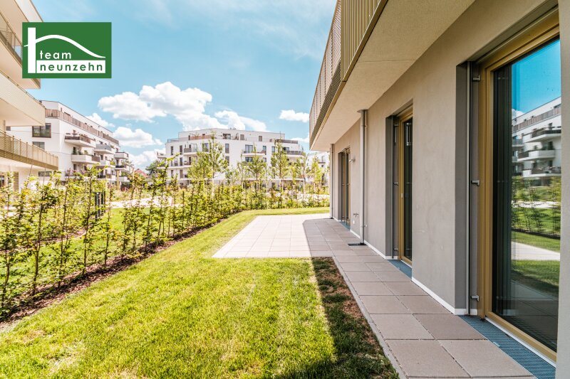 ?Hirschfeld ? Naturnah wohnen?Die gegenständliche Liegenschaft im Projekt ?Hirschfeld ? Naturnah wohnen? wurde im Jahr 2025 fertiggestellt und bietet Ihnen hochwertige Eigentumswohnungen und KFZ-Stellplätze.Die Wohnungen verfügen über 2-4 Zimmer und Wohnflächen von ca. 45m2 ? 96m2 zzgl. großzügigen Freiflächen von mindestens 9m2.Das Projekt grenzt nördlich an ein idyllisches Wald- und Wiesengebiet und südlich an die Gerasdorfer Straße. Auf Grund der Lage des Gebäudes in zweiter Reihe ist ein ruhiges Wohnambiente garantiert. Durch die vorhandene Infrastruktur und Nahversorgung eignen sich die Wohnungen sowohl für Familien als auch für Singles. Der Marchfeldkanal ist fussläufig in ca. 10 Minuten und die U-Bahn-Linie U1 - Leopoldau mit dem Bus in ca. 15 Minuten zu erreichen. Folgende Annehmlichkeiten werden Sie nicht mehr missen wollen:provisionsfreier Verkauf sofort beziehbar hochwertige und energieeffiziente Ausstattung (Fussbodenheizung- und Kühlung über Geothermie/Wärmepumpe, Sonnenschutz,?) Bauausführung durch das renommierte Bauunternehmen ?Strabag? durchdachte Grundrisse und Raumhöhen von ca. 2,60 (Regelgeschoss) ? 2,80m (EG + DG) Umfassende Allgemeinbereiche (Kinderwagen- und Fahrradraum, Spielplatz, modellierte Spielwiese mit Bäumen, Gemeinschaftsraum..) Ausstattungsstandard:Beim gegenständlichen Projekt steht vor allem der Punkt ?Energieeffizienz? im Mittelpunkt. Demnach wurde der Niedrig-Energie-Haus-Standard mit der Klima-aktiv-Zertifizierung ?Silber? erreicht.Fussbodenheizung- und Kühlung über Geothermie/Wärmepumpe PV-Anlage am Dach Hauseigene SAT-Anlage Gegensprechanlage 3-fach isolierverglaste Kunststoff-Alu-Fenster inkl. elektrischer Raffstores Sicherheitstüren inkl. Reedkontakt im EG und DG für die Nachrüstung einer Alarmanlage Parkettboden Eiche Hochwertige Sanitärausstattung mit bodenebener, gefliester Dusche bzw. Badewanne (je nach Ausführung im Plan) Kemperventil auf Freiflächen Kellerabteil bei jeder Einheit E-Ladestation kann nachgerüstet werden Garagenstellplätze Wohnung Top 4:Die Wohnung mit ca. 73,23 m² Wohnfläche und einem Eigengarten mit ca. 71,93 m² + einer Terrasse mit ca. 28,73 m² befindet sich im Erdgeschoss und gliedert sich in folgende Raumaufteilung: