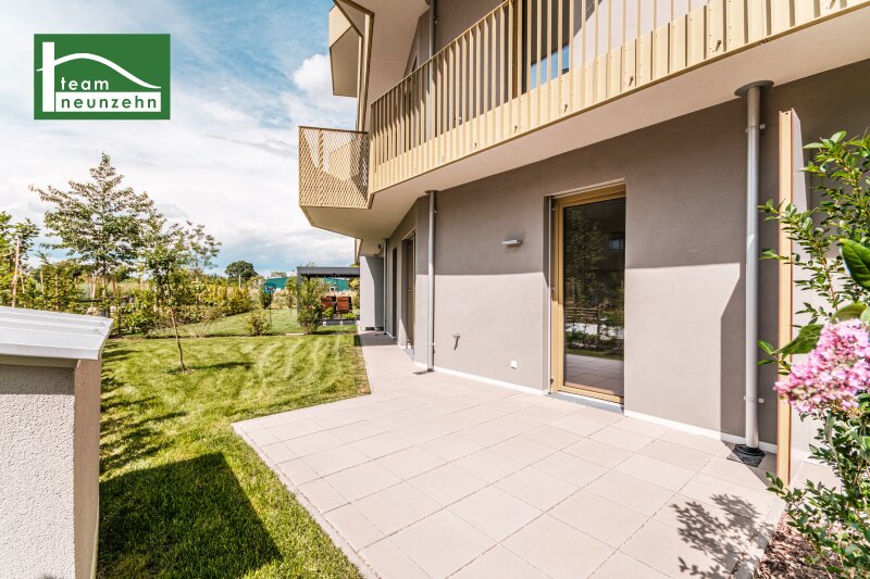 ?Hirschfeld ? Naturnah wohnen?Die gegenständliche Liegenschaft im Projekt ?Hirschfeld ? Naturnah wohnen? wurde im Jahr 2025 fertiggestellt und bietet Ihnen hochwertige Eigentumswohnungen und KFZ-Stellplätze.Die Wohnungen verfügen über 2-4 Zimmer und Wohnflächen von ca. 45m2 ? 96m2 zzgl. großzügigen Freiflächen von mindestens 9m2.Das Projekt grenzt nördlich an ein idyllisches Wald- und Wiesengebiet und südlich an die Gerasdorfer Straße. Auf Grund der Lage des Gebäudes in zweiter Reihe ist ein ruhiges Wohnambiente garantiert. Durch die vorhandene Infrastruktur und Nahversorgung eignen sich die Wohnungen sowohl für Familien als auch für Singles. Der Marchfeldkanal ist fussläufig in ca. 10 Minuten und die U-Bahn-Linie U1 - Leopoldau mit dem Bus in ca. 15 Minuten zu erreichen. Folgende Annehmlichkeiten werden Sie nicht mehr missen wollen:provisionsfreier Verkauf sofort beziehbar hochwertige und energieeffiziente Ausstattung (Fussbodenheizung- und Kühlung über Geothermie/Wärmepumpe, Sonnenschutz,?) Bauausführung durch das renommierte Bauunternehmen ?Strabag? durchdachte Grundrisse und Raumhöhen von ca. 2,60 (Regelgeschoss) ? 2,80m (EG + DG) Umfassende Allgemeinbereiche (Kinderwagen- und Fahrradraum, Spielplatz, modellierte Spielwiese mit Bäumen, Gemeinschaftsraum..) Ausstattungsstandard:Beim gegenständlichen Projekt steht vor allem der Punkt ?Energieeffizienz? im Mittelpunkt. Demnach wurde der Niedrig-Energie-Haus-Standard mit der Klima-aktiv-Zertifizierung ?Silber? erreicht.Fussbodenheizung- und Kühlung über Geothermie/Wärmepumpe PV-Anlage am Dach Hauseigene SAT-Anlage Gegensprechanlage 3-fach isolierverglaste Kunststoff-Alu-Fenster inkl. elektrischer Raffstores Sicherheitstüren inkl. Reedkontakt im EG und DG für die Nachrüstung einer Alarmanlage Parkettboden Eiche Hochwertige Sanitärausstattung mit bodenebener, gefliester Dusche bzw. Badewanne (je nach Ausführung im Plan) Kemperventil auf Freiflächen Kellerabteil bei jeder Einheit E-Ladestation kann nachgerüstet werden Garagenstellplätze Wohnung Top 6:Die Wohnung mit ca. 53,13 m² Wohnfläche und einem Eigengarten mit ca. 56,83 m² + einer Terrasse mit ca. 17,72 m² befindet sich im Erdgeschoss und gliedert sich in folgende Raumaufteilung: