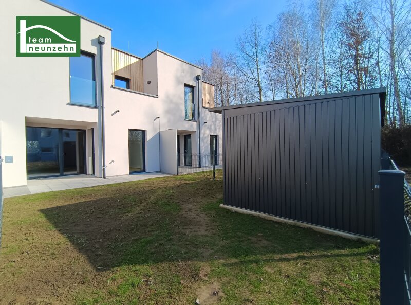 Eigenheim im St. Pöltner Erholungsgebiet: Stadt trifft Natur ? Erstbezug in traumhafter LageMit März 2026 ist die Fertigstellung dieses wundervollen Wohnbauprojektes geplant. Zur Verfügung stehen 11 Reihenhäuser. Jedem Reihenhaus sind zwei KFZ-Stellplätze zugeordnet. Die Vermittlung erfolgt für Sie provisionsfrei!Bei der Ausstattung dieser großartigen Häuser wird nicht gespart und besonders auf hohe Qualität sowie Funktionalität geachtet! In den Wohnräumen werden Eichparkettböden verlegt, während der Vorraum, der Abstellraum und die Nassräume mit Fliesen ausgestattet sind. Für ein optimales Raumklima wird mittels Fußbodenheizung und kontrollierte Wohnraumlüftung gesorgt. Durch die 3-Scheiben Isolierverglasung der Fenster kommt jede Menge Tageslicht in die Räume. Per Fernbedienung kann die Lichteinstrahlung dank der außenliegenden Rollläden ganz einfach reguliert werden. Als private Außenflächen befinden sich bei jedem Haus eine Terrasse und ein Eigengarten im Erdgeschoss sowie zwei Balkone im Obergeschoss. Zusätzlich Stauraum bietet die hauseigne Gartenhütte. Jedes Haus ist außerdem mit einer eigenen Photovoltaikanlage ausgestattet, die den Eigenbedarf abdecken sollte. Die Highlights zusammengefasst:Moderner Erstbezug Hochwertige Ausstattung Fenster mit 3-Scheiben Isolierverglasung Per Fernbedienung steuerbare Außenrollos Hauseigene SAT-Anlage Eigene Photovoltaikanlage am Dach Energieeffiziente Fußbodenheizung Kontrollierte Wohnraumlüftung mit 3-Stufenschalter Private Außenflächen: Terrasse, Garten und zwei Balkone Eigene Gartenhütte Zwei KFZ-Stellplätze inkludiert Ruhelage mit optimaler Anbindung Hohe Lebensqualität mit unzähligen Möglichkeiten für jeden Provisionsfrei Reihenhaus 7 (Reihenmittelhaus)Dieses Haus mit 111,64 m² Wohnnutzfläche hat folgende Aufteilung:ErdgeschossVorraum: 3,91 m2 WC: 1,95 m2 Abstellraum: 4,15 m2 Wohnraum: 42,12 m2 Küchenbereich: 7,50 m2 Terrasse: 10,88 m2 Eigengarten: 40,06 m2 1. Obergeschoss:Gang: 5,11 m2 Zimmer 1 (mit Zugang zu Balkon 1): 11,51 m2 Zimmer 2 (mit Zugang zu Balkon 1): 16,38 m2 Balkon 1: 3,01 m2 Zimmer 3 (mit Zugang zu Balkon 2): 11,31 m2 Balkon 2: 2,37 m2 Badezimmer: 7,70 m2 Eine Gartenhütte mit einer Fläche von