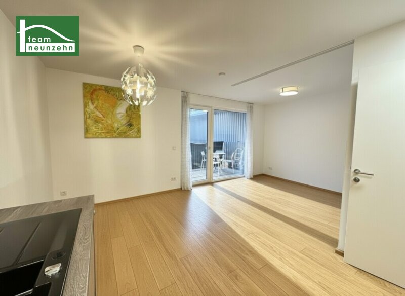 Die Alte Donau nur wenige Gehminuten entfernt, eine exzellente Anbindung mit U-Bahn, Straßenbahn und Bus, eine toll geschnittene und hochwertig ausgestattete Wohnung mit großem Innenhof-Balkon und ein exklusives Wohngebäude mit hauseigenem Pool. All das und noch viel mehr bietet Ihnen diese Wohnung. Das erst 2017 errichtete moderne Wohngebäude befindet sich in optimaler Lage, nahe dem bekannten Naherholungsgebiet Alte Donau. Es trennen Sie nur etwa 9 Gehminuten von den zahlreichen Restaurants dort, ausgedehnten Spaziergängen am Ufer oder dem Schwimmen im kühlen Nass im Sommer. In jeweils etwa 15 Gehminuten oder rasch erreichbar mit Straßenbahn oder Bus befinden sich die beiden U1 Stationen Kagran und Alte Donau. In Kagran befindet sich dazu das größte Shopping-Center Wiens, das Westfield Donauzentrum mitsamt Kino und vielen weiteren Restaurants und Bars. Das Gebäude wurde auf Baurechtsgrund errichtet, der Baurechtsvertrag wurde auf 60 Jahre abgeschlossen. Die Wohnung selbst befindet sich im 1. OG des Gebäudes und richtet sich in den ruhigen Innenhof gen Osten/Nordosten hin, sodass Sie die angenehme Ruhelage genießen, trotz der optimalen Lage. Der Balkon bietet rund 8 m² Fläche und zur rechten Seite hin an eine Außenfassade angrenzend, sodass er sich angenehm privat anfühlt. Dank der 3-fach Isolierverglasung der Fenster sowie dem außenliegenden, mittels Fernbedienung bedienbaren, Sonnenschutz wird die Wohnung gut vor Witterungsbedingungen von Außen geschützt. Verteilt auf rund 30 m² Wohnfläche gibt es Vorraum, offene Wohnküche mit Schlafnische sowie Bad mit WC. Das Bad ist hochwertig verfliest und verfügt über eine ebenerdige Walk-in-Dusche, Waschmaschinenanschluss, WC, Waschbecken mit Spiegel und Heizkörper. Die inkludierte, hochwertige Einbauküche verfügt bereits über sämtliche Elektrogeräte wie Geschirrspüler, Kühlschrank mit Gefrierfach, Backofen, Kochfeld, Dunstabzug und Mikrowelle. Sie ist in modernem Grau gehalten mit Akzenten in Schwarz und Chrom. Das Gebäude verfügt über Kellerabteile, Fah