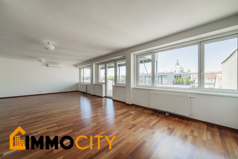 Hoch-Exklusiv und Moderne 4-Zimmer Wohnung (klimatisiert) im 7.Liftstock, nähe Karlskirche, Schwarzenbergplatz + 10 m² Balkon