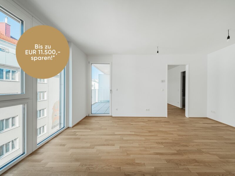 STIEGE 1 | TOP 31 Die perfekt aufgeteilte 2-Zimmer-Wohnung mit ca. 40 m² Wohnnutzfläche sowie einem Balkon befindet sich im 4. Obergeschoss der Liegenschaft.Dank dem modernen Grundriss ist die Wohnung sehr geräumig und lässt viel Spielraum zum Gestalten Ihres neuen Zuhauses offen. Die Raumaufteilung gliedert sich wie folgt:Vorraum mit angrenzendem Abstellraum und separatem WC Wohnküche (ca. 18 m²) mit direktem Zugang zum Schlafzimmer sowie zum Balkon Schlafzimmer (ca. 10,5 m²) mit Zugang zum Badezimmer sowie zum Balkon Badezimmer mit Badewanne, Handwaschbecken Handtuchwärmer und Waschmaschinenanschluss Balkon (ca. 4 m²) mit Nordwest-Ausrichtung Kellerabteil im Untergeschoss Der besonders günstig gelegene Standort der verkehrsberuhigten Einbahnstraße "Fahrbachgasse", die fließend in die Begegnungszone der dort angesiedelten Bildungseinrichtungen über geht, verleiht dem Objekt den gewissen Charme mit all seinen Vorzügen. AUSSTATTUNG DER WOHNUNG bodentiefe Holz-Alu-Fenster mit 3-fach Isolierverglasung elektrische Raffstores für die äußere Beschattung hochwertiger Echtholz Eichenparkettboden aus Österreich Anschlüsse für Küche mit Starkstrom Feinsteinzeug 30 x 60 cm der Firma Marazzi Armaturen der Marke Dornbracht Keramik in Bad und WC der Marke Laufen "Pro" Balkon mit Sichtschutz, Steckdose, Außenbeleuchtung und Wasseranschluss Ein Garagenplatz in der hauseigenen Tiefgarage kann zusätzlich erworben werden.Näher Infos entnehmen Sie bitte aus unserer Projektwebsite (www.fahrbachgasse6-8.at) oder fragen Sie unser kompetentes Beratungsteam! HIGHLIGHTS verkehrsberuhigte Einbahnstraße mit Übergang zur Begegnungszone geringe bis keine Lärmbelastung Bildungseinrichtungen um die Ecke (Bildungsmeile / Bildungsgrätzel) 2 Gehminuten zum Bahnhof Floridsdorf (U6, S-Bahnen, Straßenbahnen, Busse) 6 Gehminuten zur Alten Donau top Anbindung an den Individualverkehr zertifiziertes Gebäude - zukunftsorientiert für Eigennutzer und Anleger intelligente Gegensprechanlage (via App steuerbar) smartes Briefkastensystem mit Paketboxenanlage Digitales Schwarzes Brett und smarte Hausverwaltung - App ?puck? Gemeinschaftsraum für alle Bewohner (mit Kletterwand, Tischfu