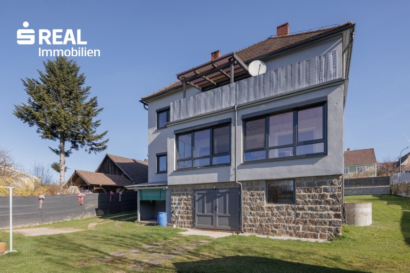 Herzlich willkommen in Ihrem neuen Eigenheim direkt in der idyllischen Marktgemeinde Windigsteig im Herzen vom Waldviertel. Hier erwartet Sie eine einzigartige Immobilie, die Ihnen nicht nur ein komfortables Zuhause, sondern auch ein traumhaftes Wohngefühl bietet. Diese Immobilie ist perfekt für große Familien, Paare, Wohngemeinschaften und auch Anleger. Alle Stockwerke sind lichtdurchflutet und sehr geräumig. Schon beim Betreten des Hauses werden Sie von einem Gefühl der Geborgenheit und Behaglichkeit umhüllt. Das Haus wurde ab dem Jahr 2022 saniert und modernisiert und wird in sehr gepflegtem Zustand teilmöbliert übergeben. Die gut überlegte Aufteilung der einzelnen Räume sowie die diversen Nutzungsmöglichkeiten lassen keine Wünsche offen. Der umzäunte Garten sowie der große Balkon bieten Ihnen eine wunderschöne Aussicht auf die grüne Vegetation. Die Pergola sowie der schöne Wintergarten laden Sie auch herzlich dazu ein schattige Stunden mit Ihren Liebsten dort zu verbringen. Der Schuppen ist ideal für Bastler um jeglichen Hobbies nachgehen zu können. Die Gartenlaube bietet Ihnen ausreichend Platz um Ihre Gartengeräte abstellen und säubern zu können. Auch Ihre vierbeinigen Freunde werden sich hier wohlfühlen, da der Garten genügend Platz zur Entfaltung und zum Toben bietet. Die Liegenschaft teilt sich auf in: Wohnhaus (KG, EG, OG, DG) umzäunter Vorgarten umzäunter Garten Schuppen Gartenlaube gepflasterte Terrasse Das Kellergeschoss (ca. 79,00 m²) unterteilt sich in: Pergola Werkstatt mit Tor zum Garten Lager 1 mit Hauswasserwerk für den Nutzbrunnen Heizraum Badezimmer mit Badewanne und Holz-Warmwasserspeicher Sauna Flur Lager 2 Öltankraum Aufgang zum Erdgeschoss Das Erdgeschoss (ca. 93,00 m²) unterteilt sich in: Windfang Badezimmer mit Dusche Speis WC Küche mit Holzkochofen Wohnzimmer mit Kachelofen Wintergarten Gästezimmer Schlafzimmer Abgang zum Kellergeschoss Aufgang zum Obergeschoss Das Obergeschoss (ca. 74,50