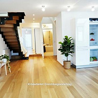 unteres Stockwerk: Vorraum, Wohnzimmer inkl. Wohnküche, zwei separate (Schlaf)zimmer, Badezimmer, separates WC