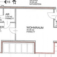 Bestehend aus Vorraum, 2 Schlafzimmer, Wohnzimmer, Wohnküche (nicht möbliert), Bad mit Dusche und Wanne, WC.