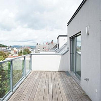 Zur Vermietung gelangt diese helle Dachterrassenwohnung mit fantastischem Blick auf den Kahlenberg im 6.Liftstock (letzter Stock) eines schönen Neubauhauses (2013).