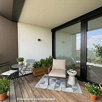 Hinweis: Zur Inspiration und Illustration wurden die Originalräume und die Terrasse virtuell mittels KI eingerichtet (Fotos…