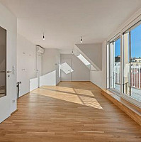 Die geräumige, vollklimatisierte Dachgeschoss-Wohnung verteilt sich auf 3-Zimmer mit ca. 72 m² Wohnnutzfläche sowie einem Balkon.