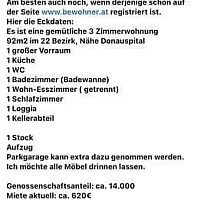 Die Wohnung verfügt über 3 Zimmer, Küche, Vorraum, Bad mit Badewanne, WC, Einbauküche mit folgenden…