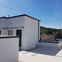 Schickes, modern gestaltetes Wohnhaus mit großer Garage und toller Aussichtsterrasse im Ortsgebiet von Payerbach.Wenn Sie kein Gartenfan sind, aber trotzdem Luft und Licht lieben, sind Sie hier…