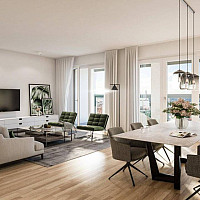 Die sonnige Neubauwohnung befindet sich mitten im Grünen in der Nähe eines Baches.