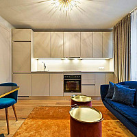 Das Serviced Apartment ist komplett eingerichtet und besteht aus einem Wohnzimmer mit Küche und Essplatz für zwei Personen, einem Schlafzimmer, einem Badezimmer mit bodengleicher Dusche, einem…