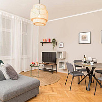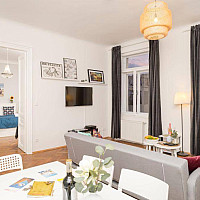 Dieses helle 65 m²-Apartment befindet sich in der Nähe des Gartenpalais Liechtenstein und zum Zentrum Wiens, dem 1. Bezirk. Es besteht aus einem Wohnzimmer mit Essbereich, einer voll ausgestatteten…