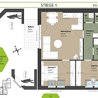 Die Wohnung befindet sich im Dachgeschoß eines topsanierten Althauses und bietet auf 80m² eine