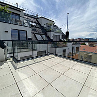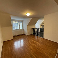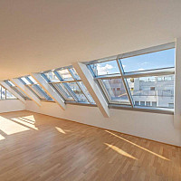 Die 1997 neu errichtete Dachgeschoßwohnung ist vom Vorzimmer aus zentral begehbar.