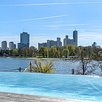 Architektenvilla mit privatem Infinity-Pool und Blick auf die Alte Donau sowie die Skyline von Wien! Willkommen an einem Ort, der mehr ist als ein Zuhause ? ein Rückzugsort voller Ruhe, Eleganz und…