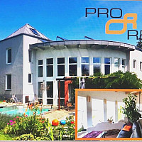 Es handelt sich um ein zweigeschossiges Wohnhaus mit Pultdach und einem eingeschossigen Anbau, in dem sich der Wellnessbereich mit Sauna und ein Lagerraum befinden. An diesem Anbau ist ein Carport…