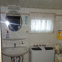 Schlafzimmer, Wohnzimmer mit Durchreiche zur Küche, Bad mit Wanne und Waschmaschschine und 2 Abstellräume