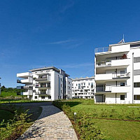 Die weitläufige Anordnung der südwestlich angeordneten Baukörper - es werden 5 Häuser mit insgesamt 39 Wohnungen und 11 Reihenhäuser errichtet - ermögli- chen einen hohen…