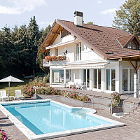 Das elegante Einfamilienhaus mit beheiztem Pool + Gegenschwimmanlage befindet sich auf einem perfekt bepflanzten Grundstück in einer ruhigen, ländlichen Wohngegend. Dieses, mit viel Liebe und…