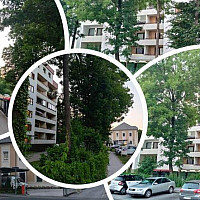 Wohnen im Grünen, aber mitten in der Stadt. Die Bäume (mit Eichkätzchen) sehen beim Fenster rein.